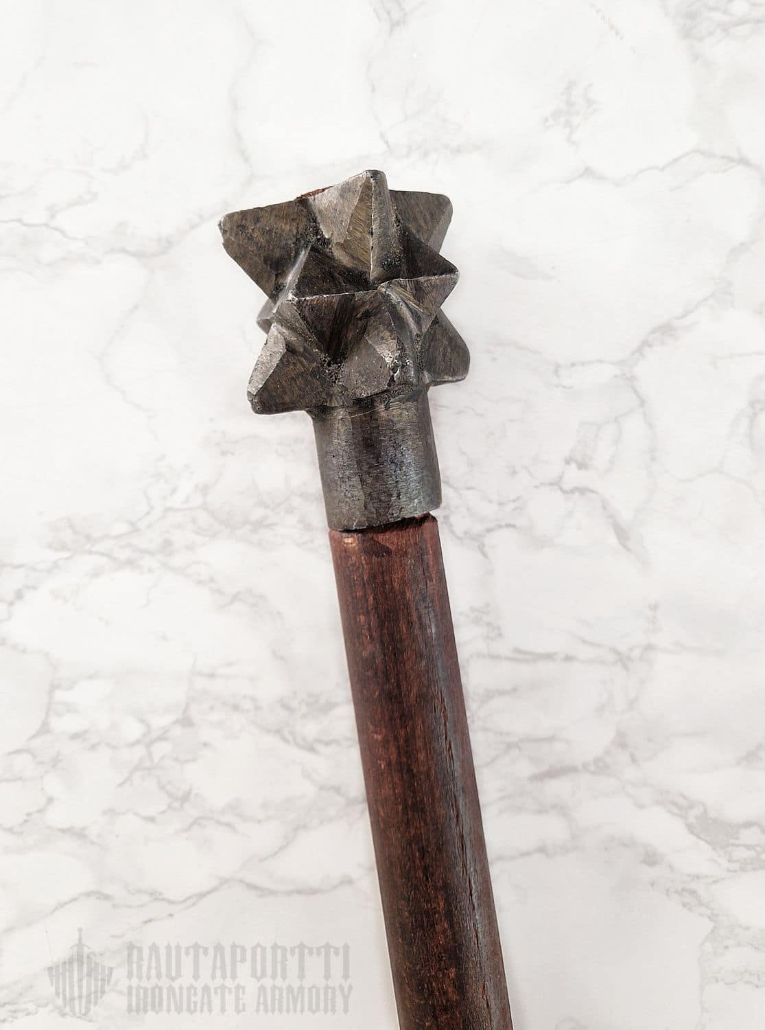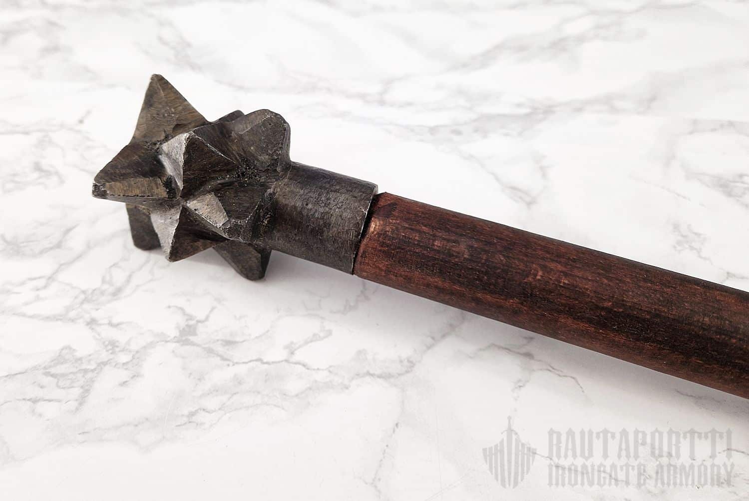 - Nuijanpää on kiinnitetty tummanruskeaan puuvarteen