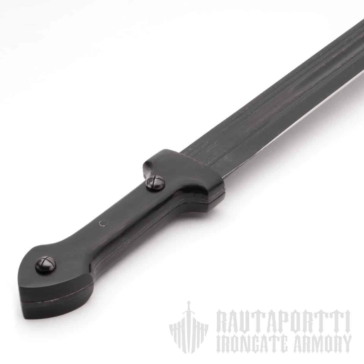 Terä on taottu 1065 runsashiiliteräksestä, ja siinä on tumma, taistelunkestävyyttä korostava viimeistely. Rakenne on täysruotoinen, ja terä on karkaistu noin matalalle 50 Rockwellin kovuusalueelle. Teräväkärkinen muoto antaa aseelle erinomaisen lävistyskyvyn. Useat uurteet sekä keskellä kulkeva pitkittäisura keventävät rakennetta ja tekevät miekasta tasapainoisen ja elävästi käsiteltävän.