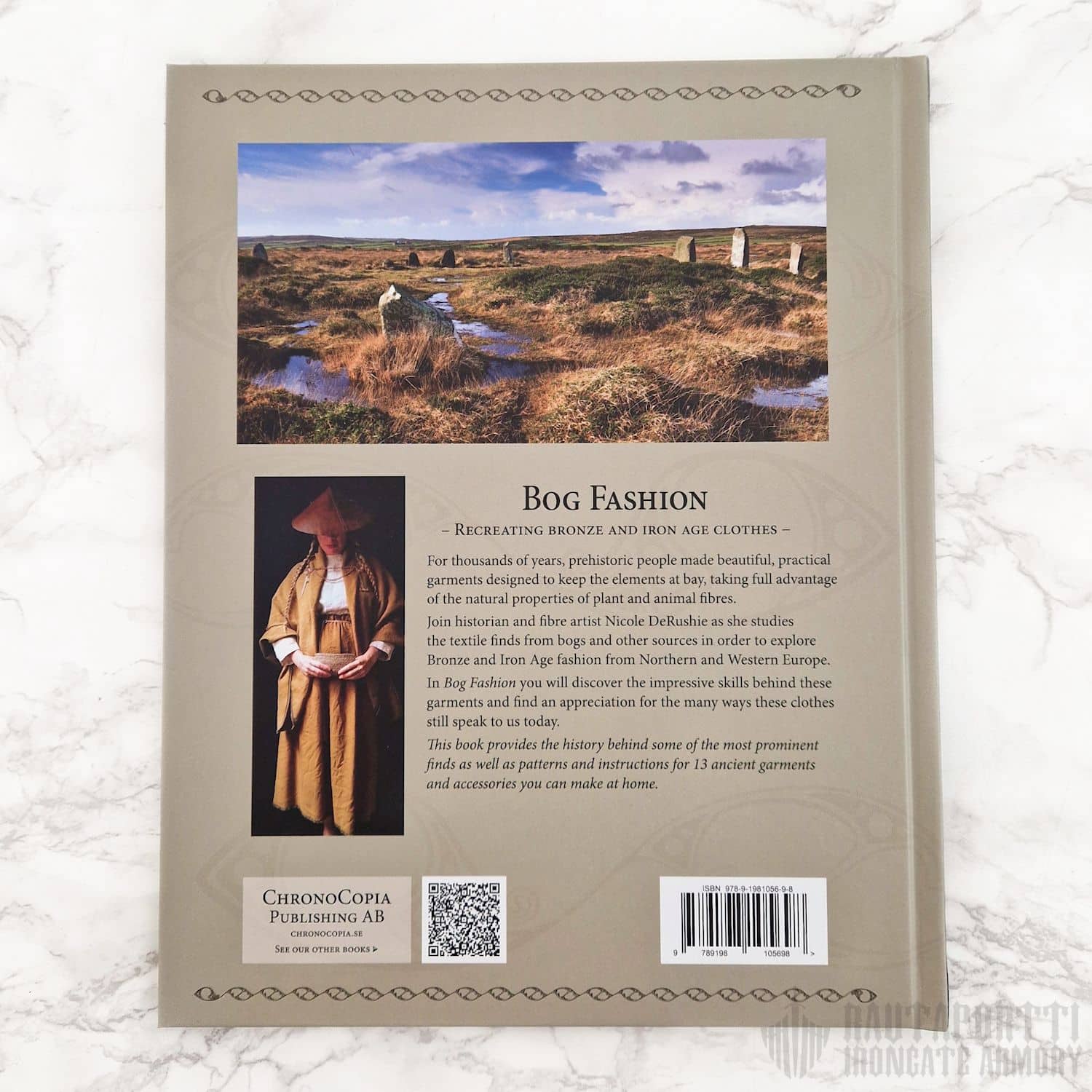 Tuhansien vuosien ajan esihistorialliset ihmiset valmistivat kauniita, käytännöllisiä ja kestäviä vaatteita hyödyntäen kasvi- ja eläinkuitujen luonnollisia ominaisuuksia. Bog Fashion -kirjassa käydään läpi näiden tekstiilien merkittävimmät suolöydöt, ja niiden kautta tutustutaan pohjois- ja länsi-Eurooppalaiseen pronssi- ja rautakautiseen muotiin. Kirjassa on kaavat ja ohjeet 13 muinaisvaatteen ja -asusteen valmistamiseen.