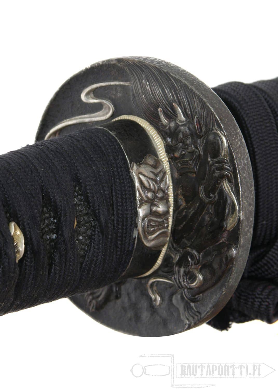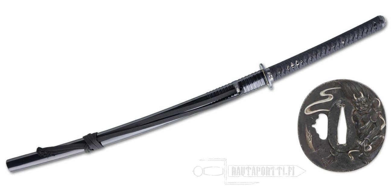 Oni on myyttinen olento japanilaisesta kansanperinteestä, vastaava kuin länsimaiset demonit tai peikot. Nykykulttuurissa Oni on alkanut siirtyä pois tästä uhkaavasta merkityksestä enemmä suojelijan rooliin. Heidän voimansa ja hurjuutensa ei kuitenkaan ole vähentynyt. Japanilainen sanonta, joka käännettynä tarkoittaa "Oni rautamailalla" tai "olla voittamaton luonne", sopii täydellisesti L6/Bainite-terään, jolle tämä Oni Katana on rakennettu. 29 tuuman terässä on Performance-sarjan geometria, mikä takaa erinomaisen leikkauskyvyn. 14 tuuman tsuka on kääritty mustaan rauskunnahkaan ja siinä on silkkinen ito, kun taas Koshiraessa on erityylisiä klassisia Oni-hahmoja. Tämä katana on ainutlaatuinen yhdistelmä kansanperinnettä ja toiminnallisuutta.