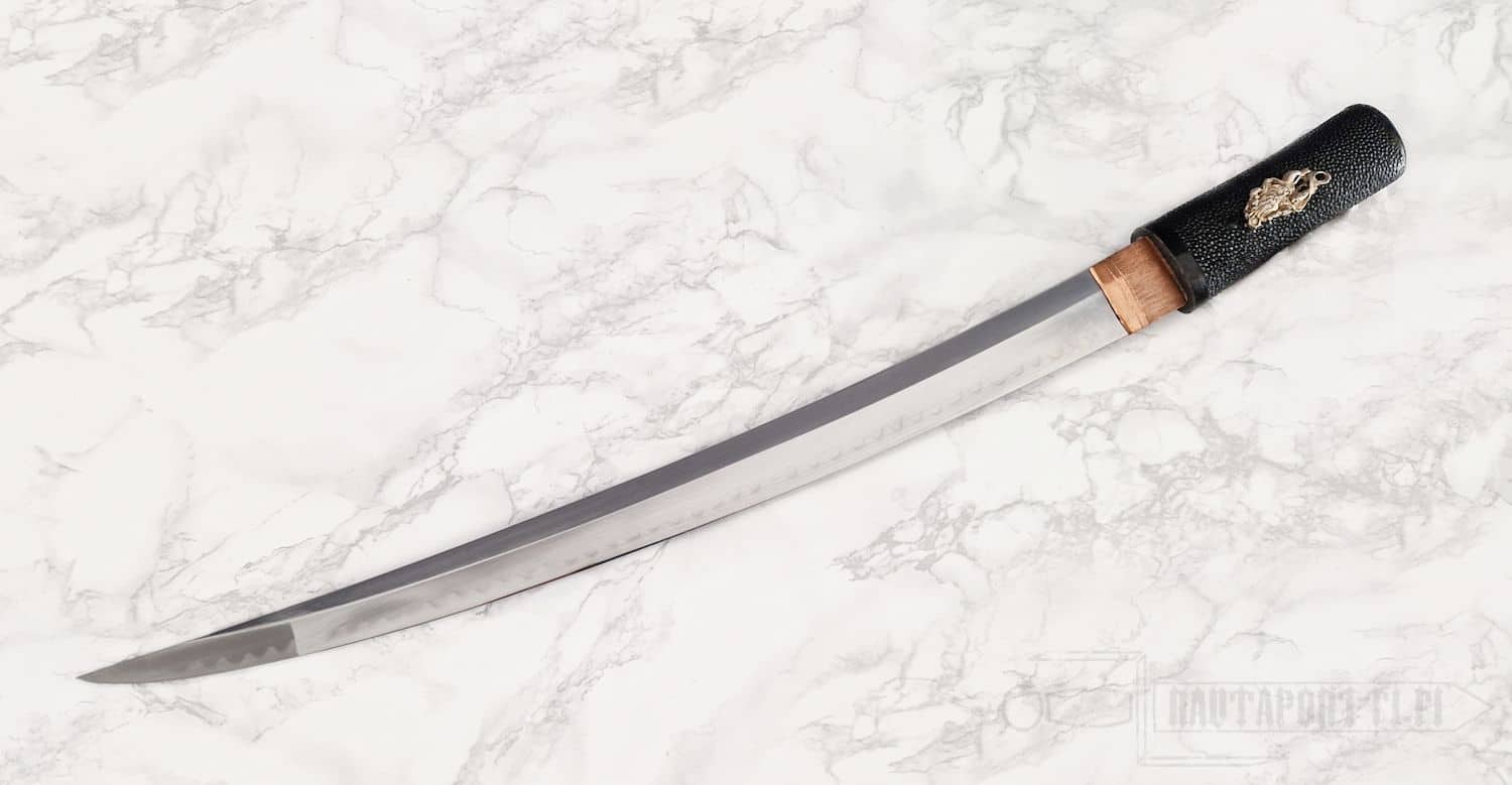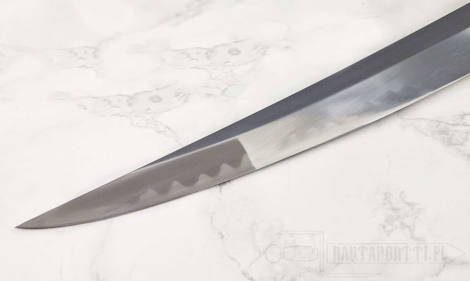 - Terän materiaali/Nagasa: Käsin taottu differentiaalikarkaistu T10 korkean hiilipitoisuuden teräs