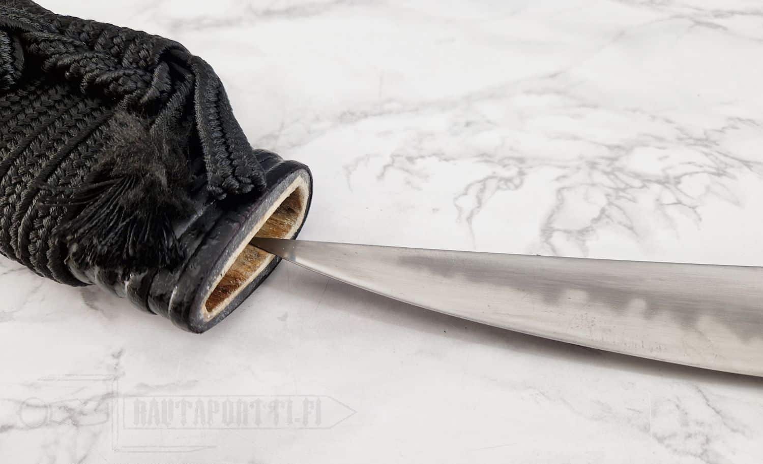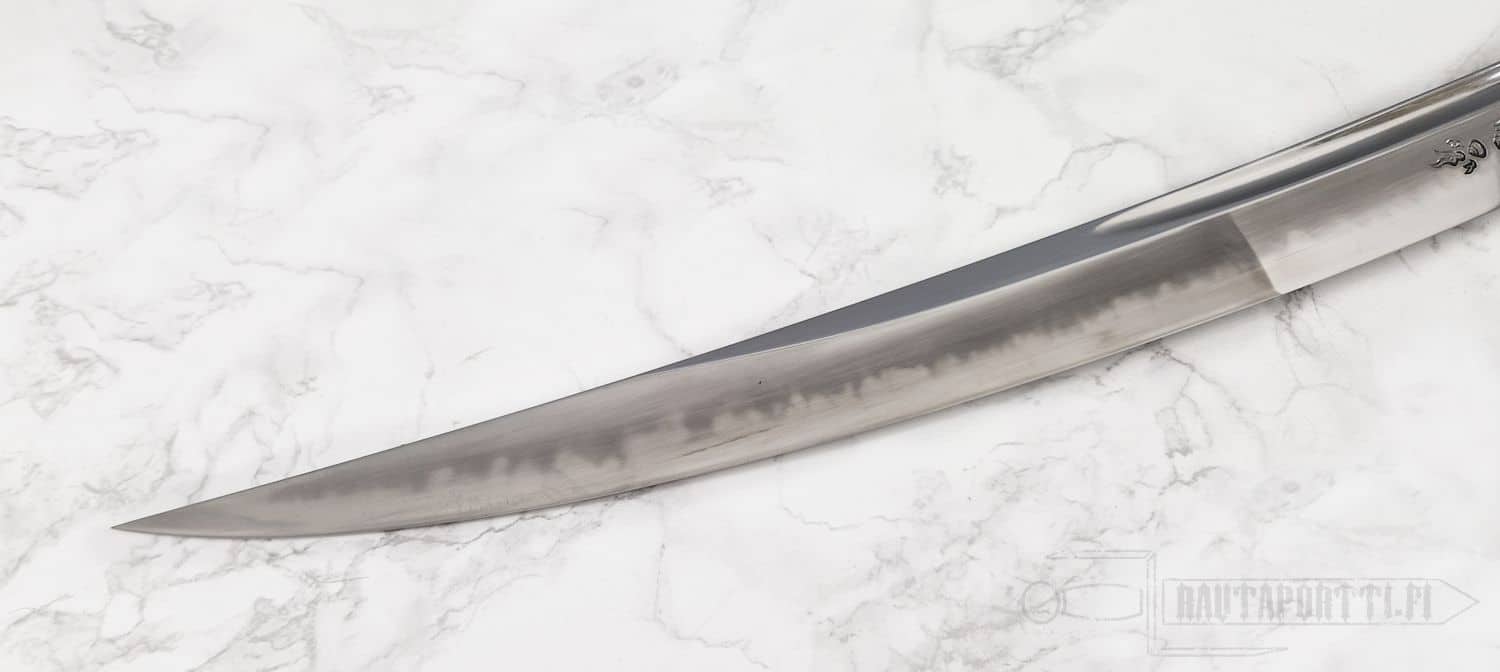- Poikkeuksellisen pitkä 25 cm kissaki (terän kärkiosa)