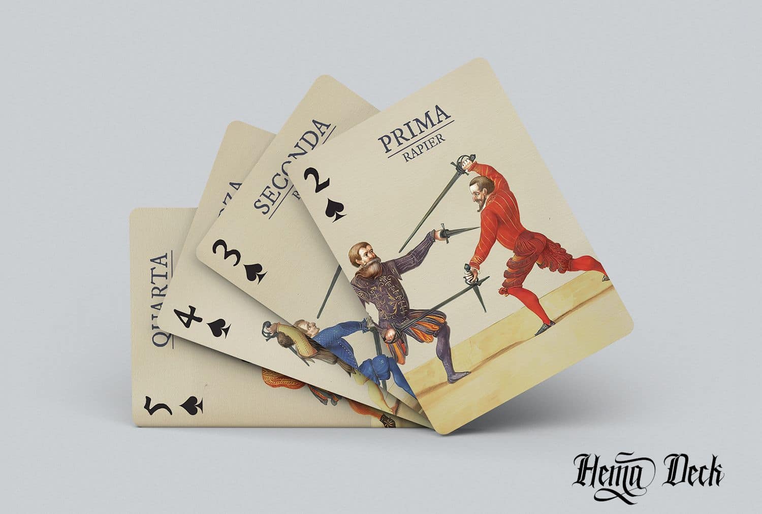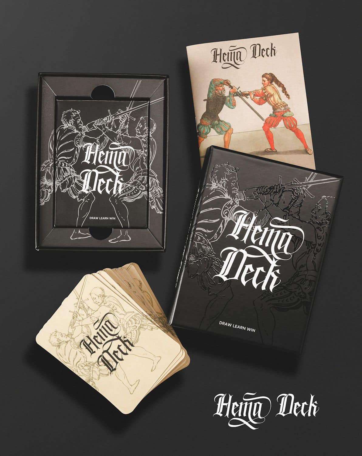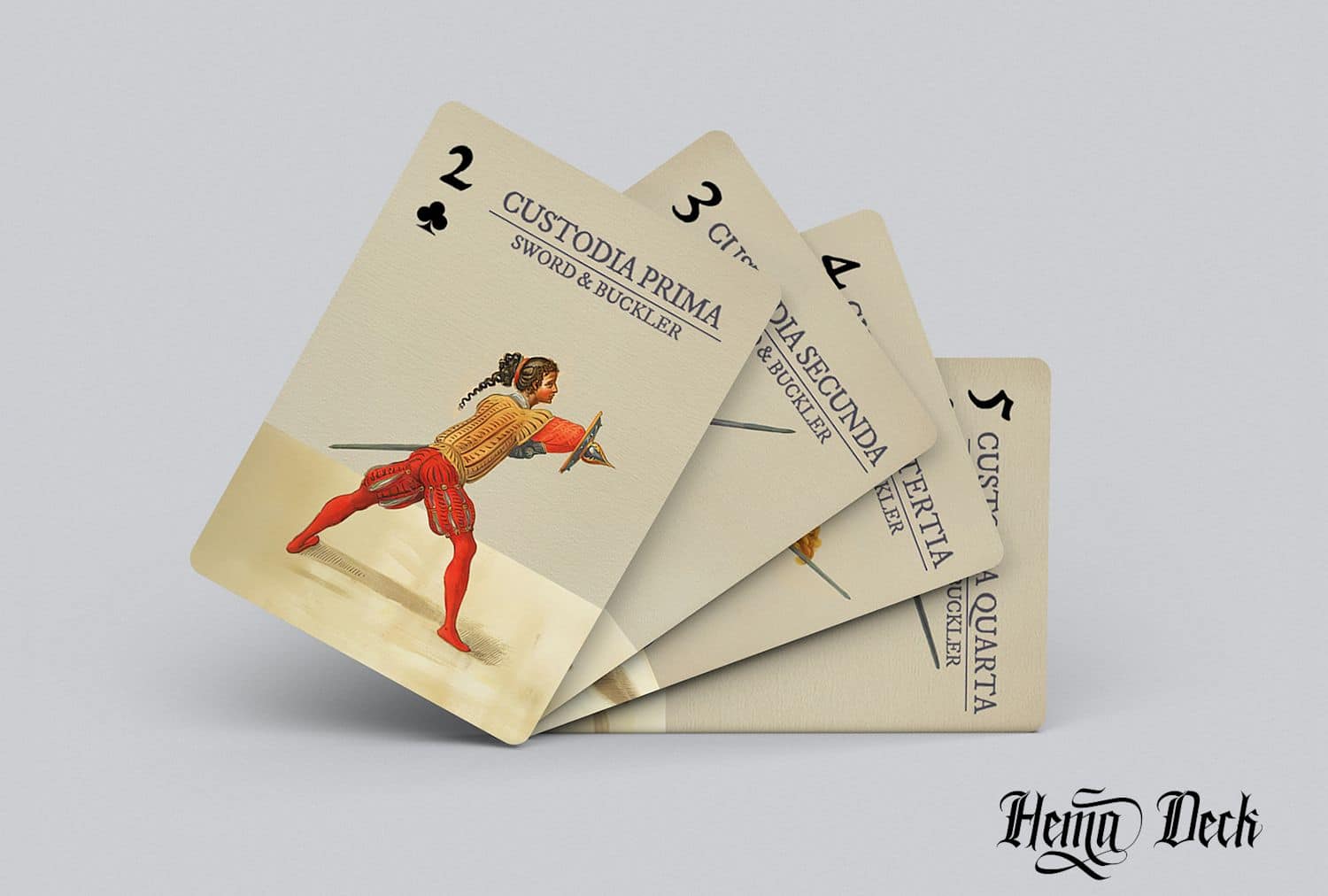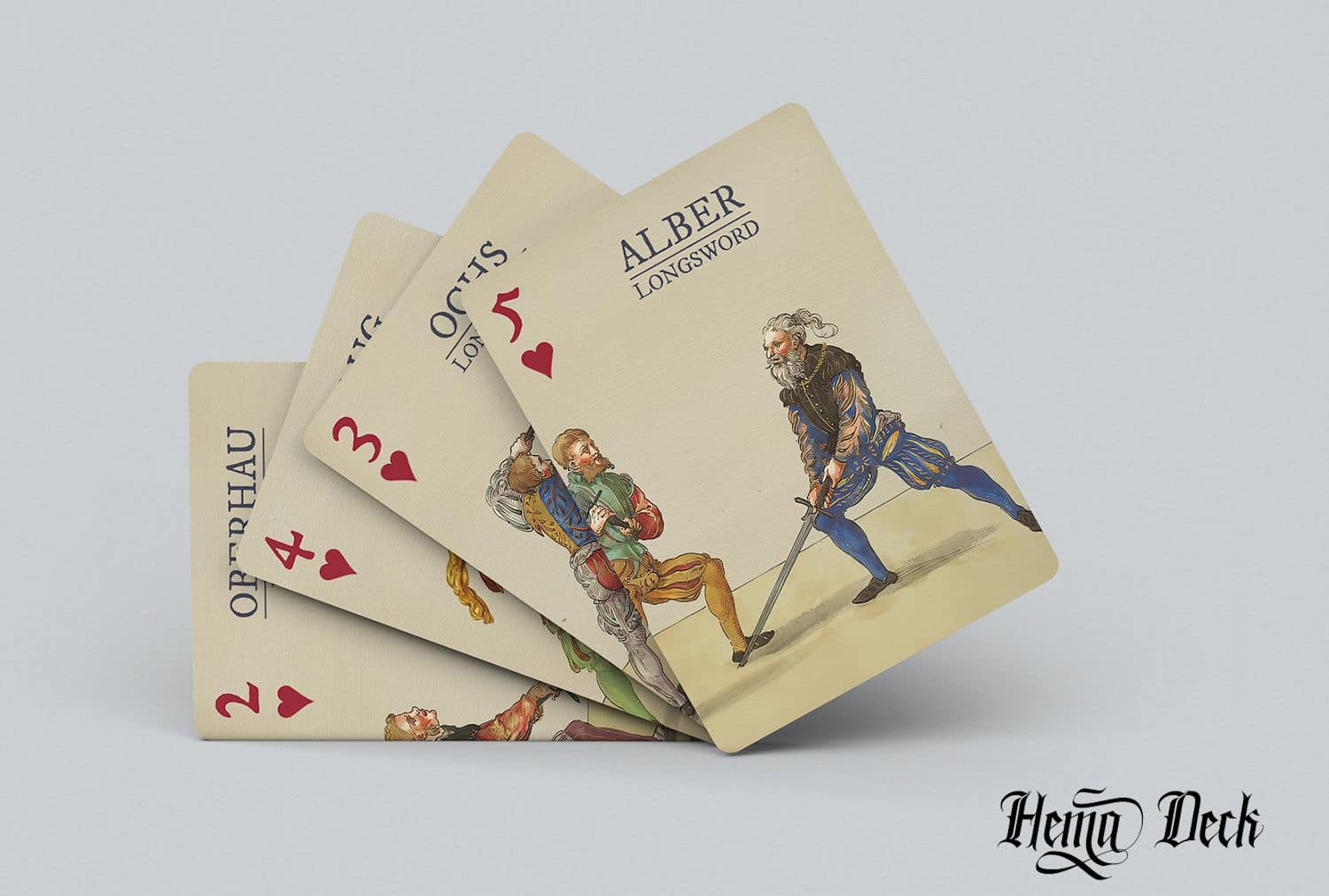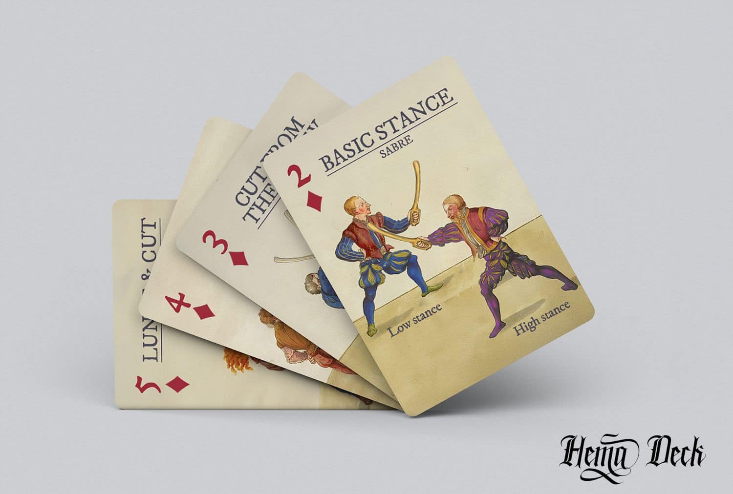 HEMA Deck on ainutlaatuinen korttipakka, joka on saanut inspiraationsa historiallisista eurooppalaisista kamppailutaidoista (HEMA). Jokainen kortti esittelee historiallisista lähteistä peräisin olevia tekniikoita ja asentoja, jotka on kuvitettu selkeästi ja helposti ymmärrettävästi. Pakka on suunniteltu avuksi sekä aloittelijoille että opettajille, ja se esittelee neljän keskeisen HEMA-lajin olennaiset perusteet: Pitkämiekka (Hertat), Rapiiri (Pata), Sapelimiekkailu (Ruutu) sekä Miekka ja kupurakilpi (Risti).
