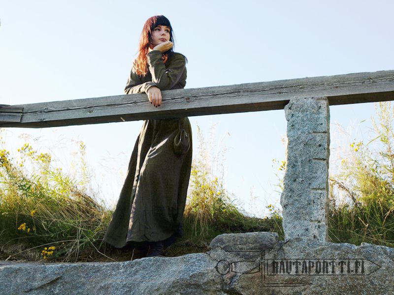 Tämä tuote on valmistettu käsityönä eläväisestä kankaasta, jonka tarkoitus on esittää vanhaa käsintehtyä vaatetta. Kankaassa saattaa siis olla pieniä pintavaurioita tai epätäydellisyyksiä. Väri ja pintarakenne voi myös hieman vaihdella.