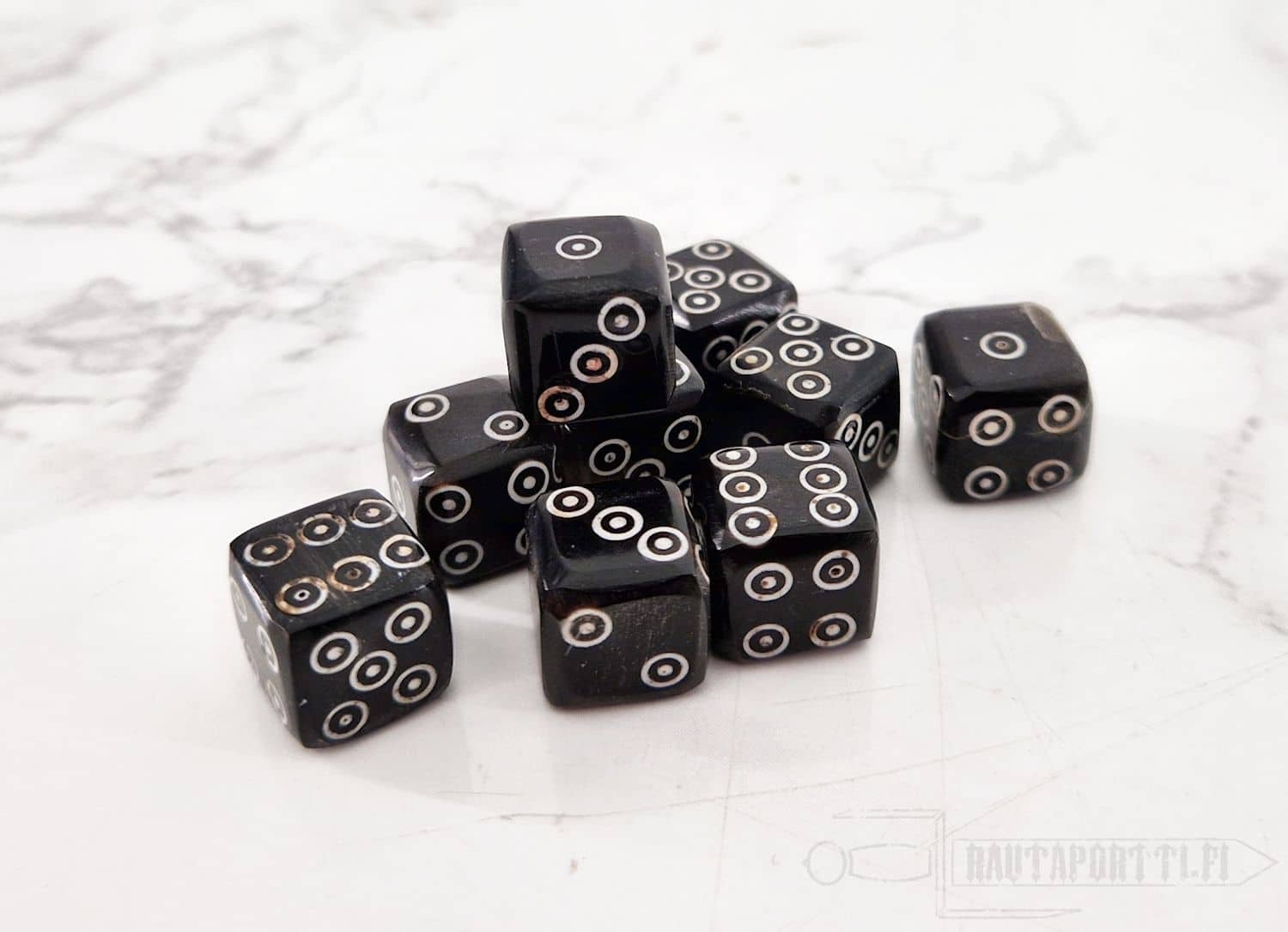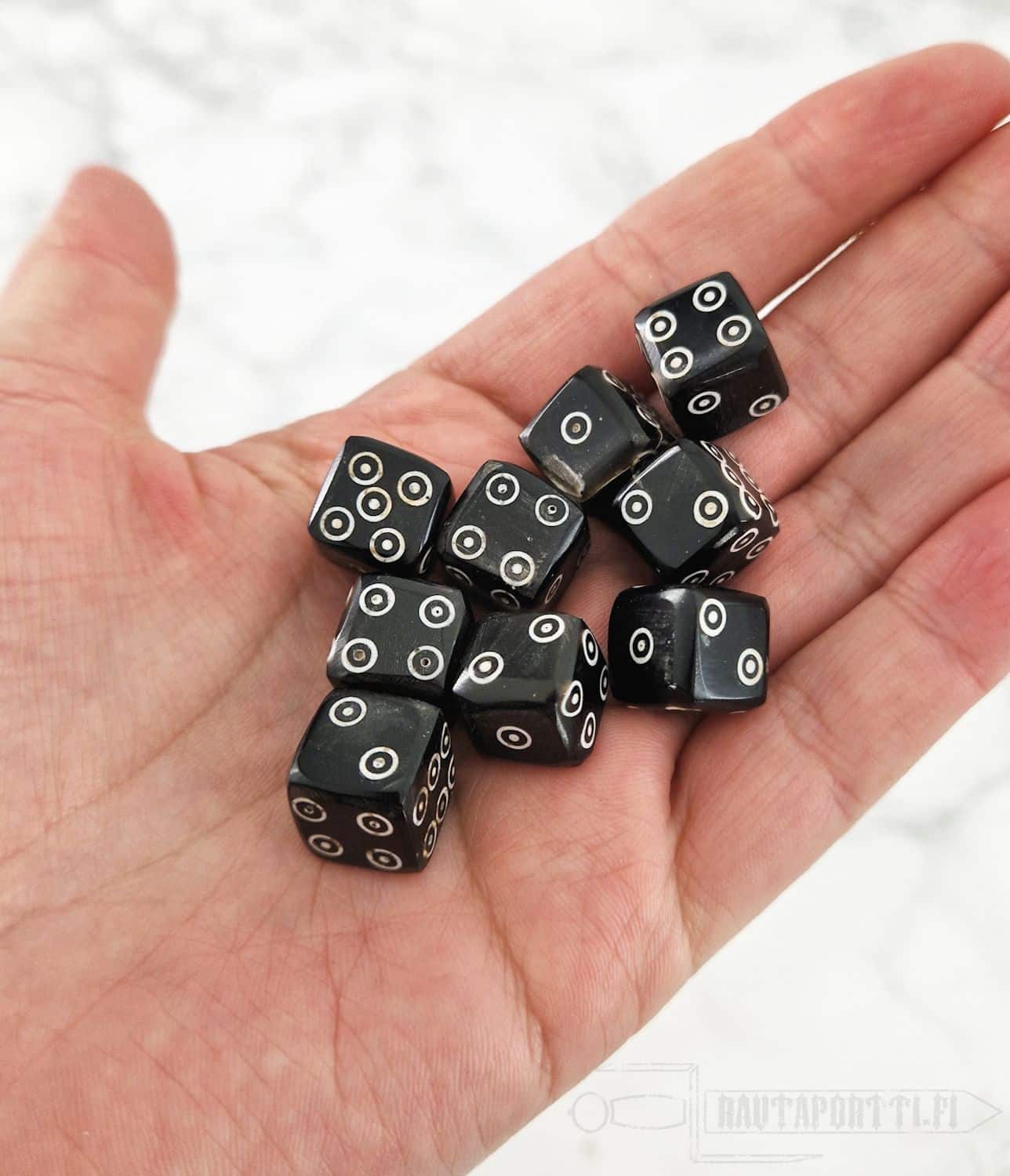 - Luut ja sarvet ovat luonnonmateriaaleja, mikä tekee jokaisesta nopasta ainutlaatuisen