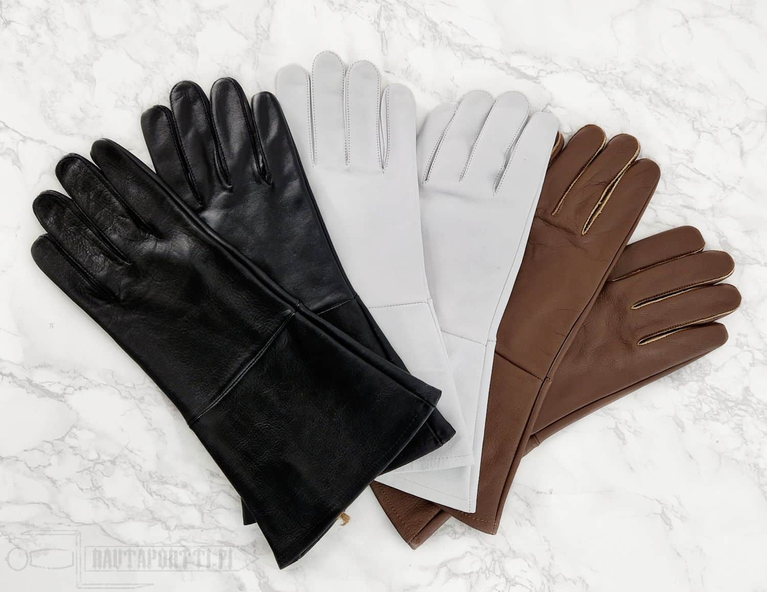 Samoja hansikkaita on saatavilla myös valkoisena. Katso tuote -Historialliset sotilaalliset nahkahansikkaat-.