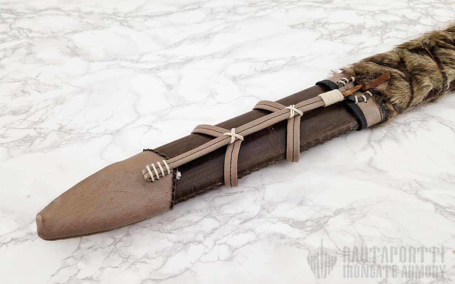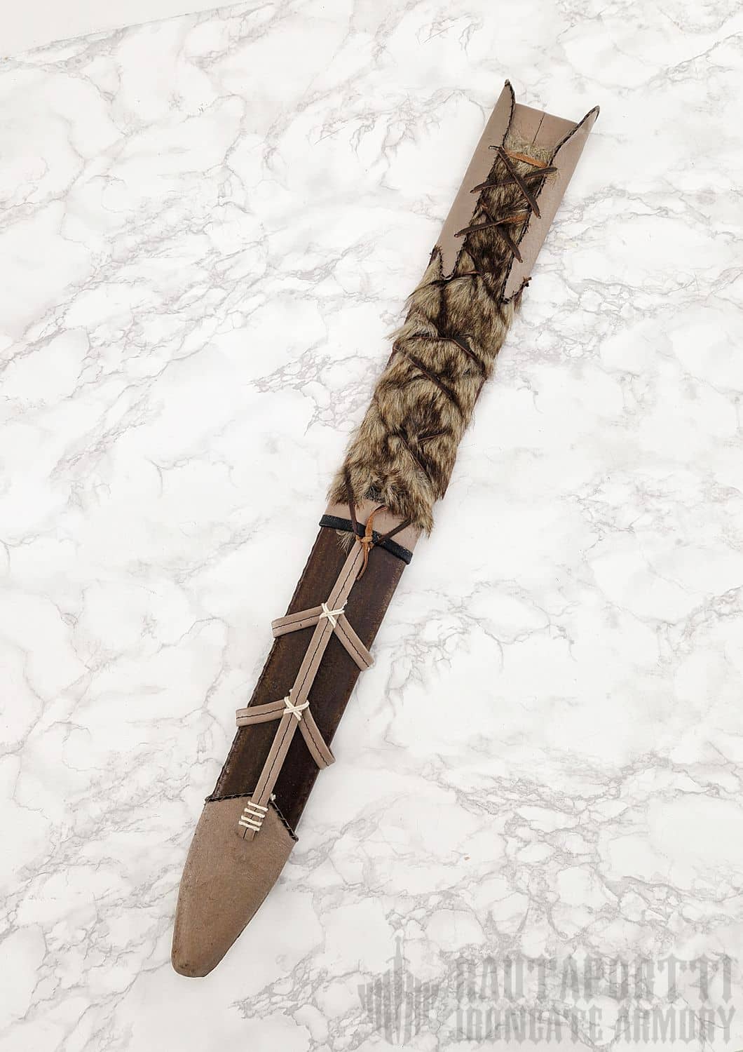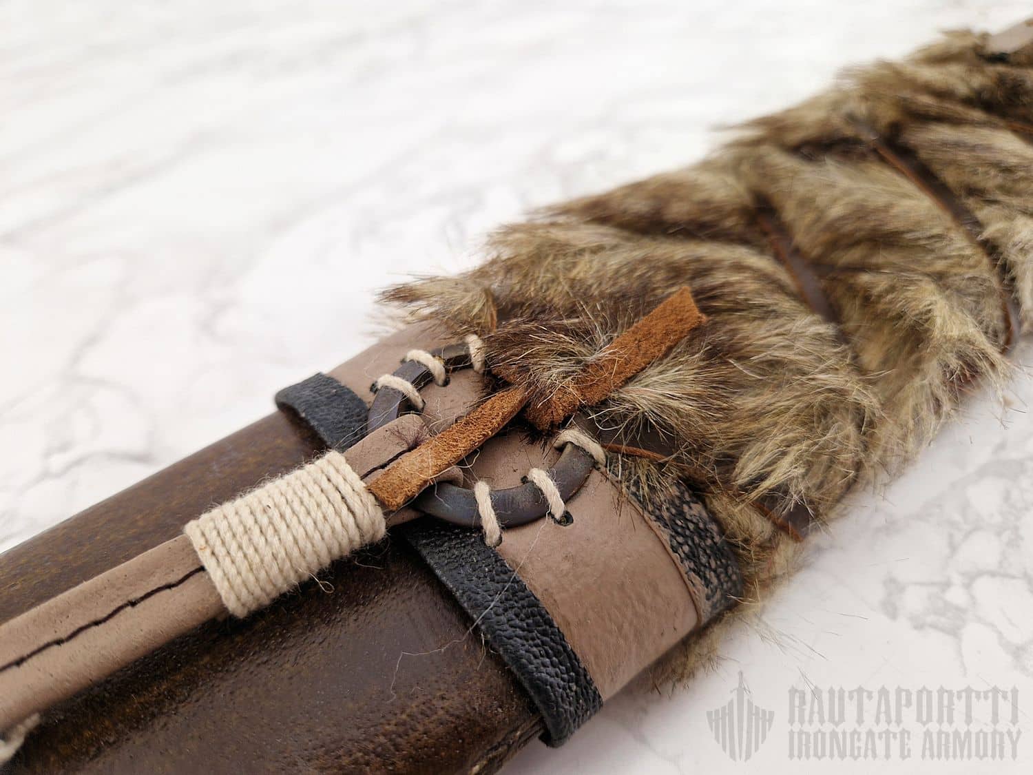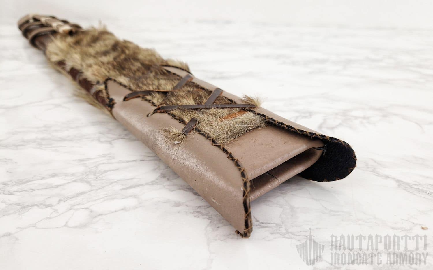 Huotra on käsinommeltu, ja materiaalit ovat aitoja korkealaatuisia nahkoja ja turkiksia. Huotra on Marton valmistama.