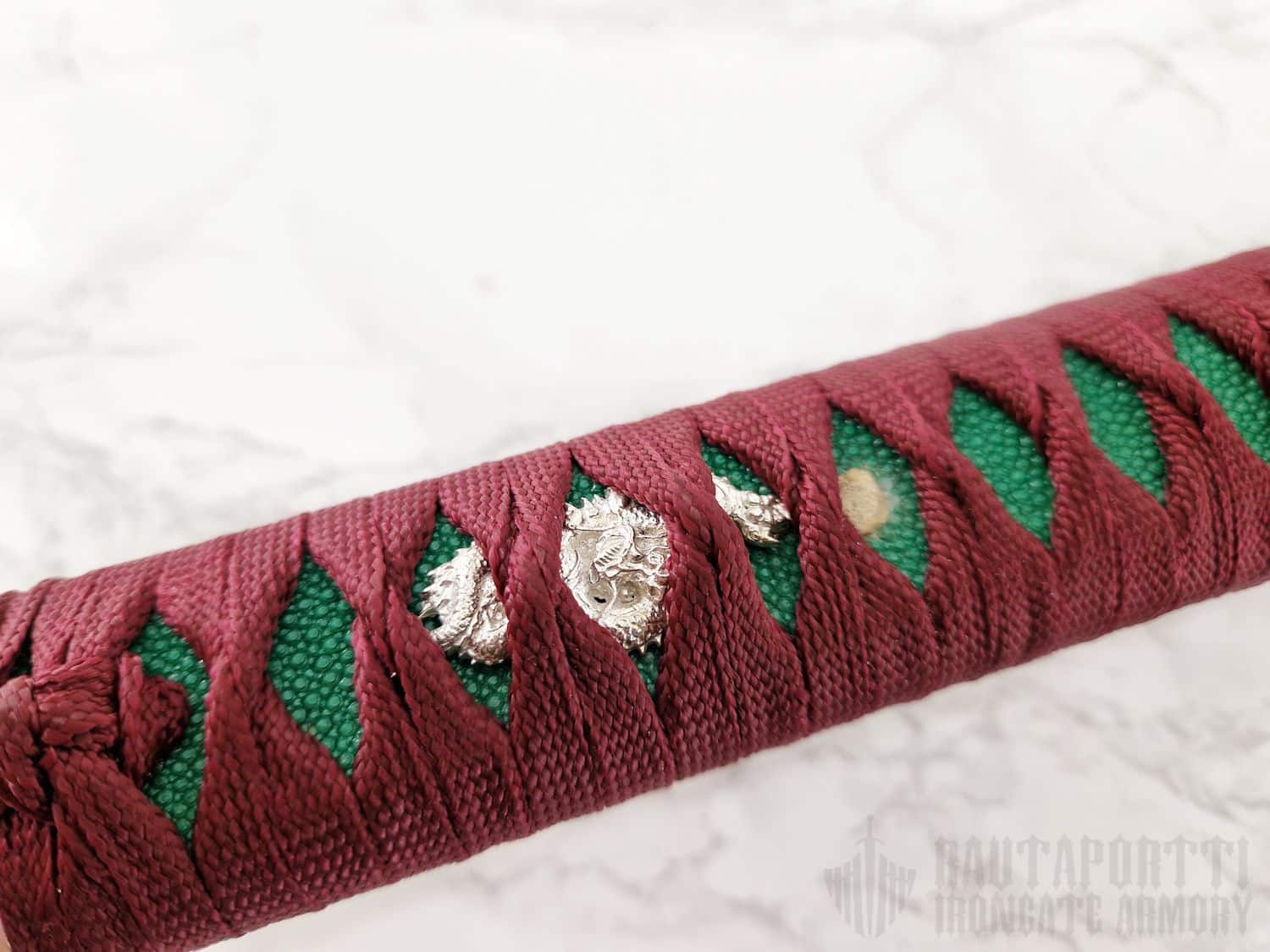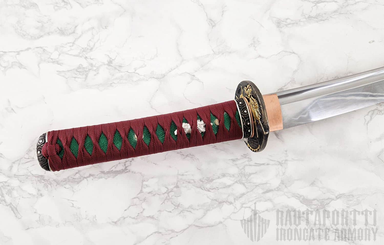 - Kahvan materiaali / Tsuka: Kovapuu – aito rauskun nahka – silkki