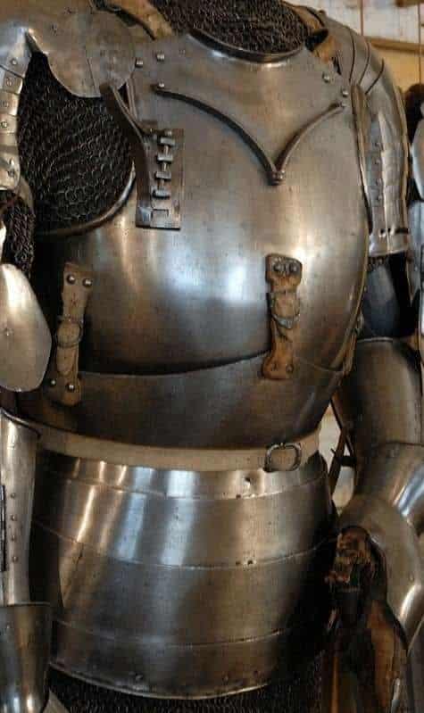 Tämä täysin toiminnallinen historiallisen haarniskan jäljennös koostuu neljästä erillisestä osasta. Isoimpina kappaleina kantajan ylävartaloa suojaavat rinta- ja selkäpanssari, jotka päättyvät kantajan luonnolliselle vyötärölle, mikä varmistaa käyttäjän turvallisuuden ja liikkuvuuden. Seuraavana haarniskan osana ovat rinta- ja selkäosasta riippuvat fauldsit. Nämä säädettävillä nahkahihnoilla kiinni olevat levyt suojaavat alavatsaa ja lonkkia. Fauldsit ovat kiinni nahkahihnoin, jolloin ne pääsevät tarvittaessa liikkumaan, painumaan sisäkkäin ja mahdollistavat vartalon ja jalkojen vapaat liikkeet.