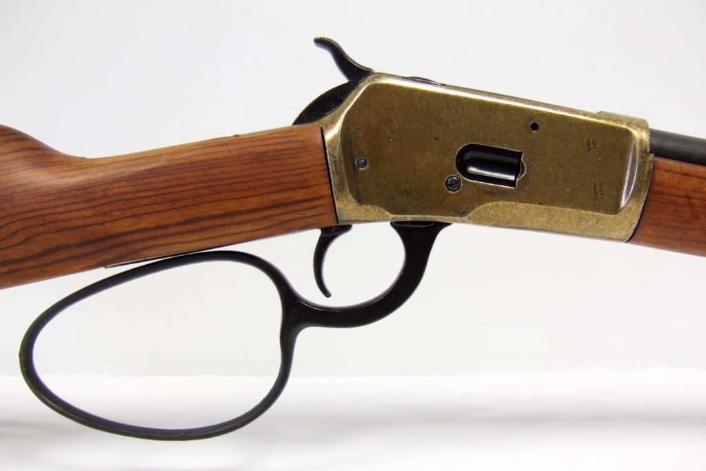 Tämä on replica vuoden 1892 mallin Winchester kivääristä isommalla John Waynen -tyylin latausvivun lenkillä. Tätä Winchesterin mallia 1892 valmistettiin hieman yli miljoona kappaletta ja valmistus lopetettiin 1940-luvulla. Winchester-kivääri perustui aiemmalle Henry-kiväärille ja ennen tätä 1892 Winchester mallia oltiin valmistettu malleja 1866, 1873, 1876 ja 1886, joista jokainen malli oli tuonut mukanaan pieniä muutoksia ja uudistuksia. Visuaalisesti ja toiminnallisesti eri Winchester mallit ovat hyvin samanlaisia ja useita eri malleja valmistettiin ja myytiin samanaikaisesti antaen ostajalle valinnanvaraa.