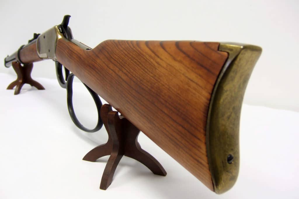 Winchester on klassisinen villin lännen kivääri, joka näkyy lähes poikkeuksetta kaikissa westerneissä. Winchester-kivääriä ei turhaan jo aikanaankin mainostettu "aseena, joka valloitti lännen." Tämä kivääri on nähty mm. John Waynen käsissä tusinoissa elokuvissa, jotka sijoittuvat tuohon klassiseen villin lännen valloitukseen 1830-1860. Winchester-kivääri käytti saman kaliiperin luoteja kuin Colt SAA "Peacemaker" -revolveri, ja nämä kaksi asetta yleistyivät rinta rinnan villissä lännessä. Tämän vipulukkokiväärin tukissa on John Waynen kunniaksi messinkiset nimikirjaimet J.W.
