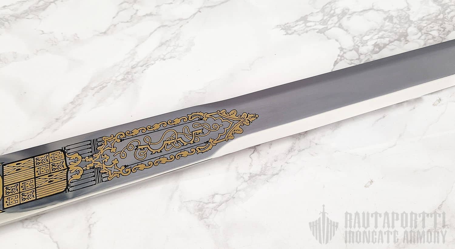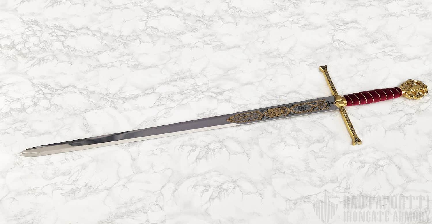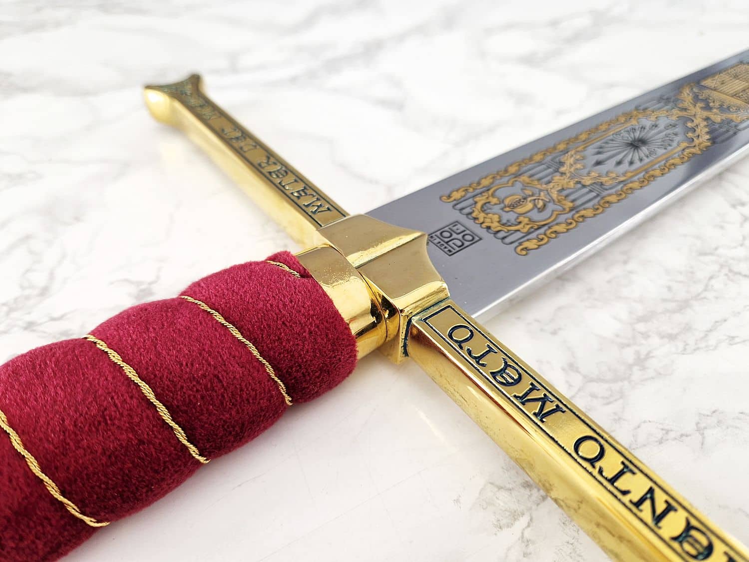 Tämän katolisten majesteettien seremoniallisen pitkämiekan alkuperäiskappale on nykyään esillä Madridin kuninkaallisessa asevarastossa. Isabella ja Ferdinand aateloivat tällä miekalla Kristoffer Kolumbuksen hänen palatessaan ensimmäiseltä Amerikan-matkaltaan, ja miekkaa käytettiin kuninkaallisen vallan symbolina juhlallisissa hovitilaisuuksissa aina 1700-luvulle asti. Miekan ponnessa on neljä reikää, jotka antavat sille ristin muodon. Väistiin on kaiverrettu Isabellan ja Ferdinandin motto: "Tanto monta, monta tanto", "Sen arvoinen kuin on toinen, niin on toinenkin." Tämä miekka on varsin erityinen kaikkien niiden miekkojen joukossa, jotka vetoavat kuuluisiin historiallisiin juuriinsa, sillä miekka on ollut yhtäjaksoisesti kuninkaallisessa inventaariossa aina katolisten majesteettien seuraajan, Kaarle V:n, ajoista lähtien.