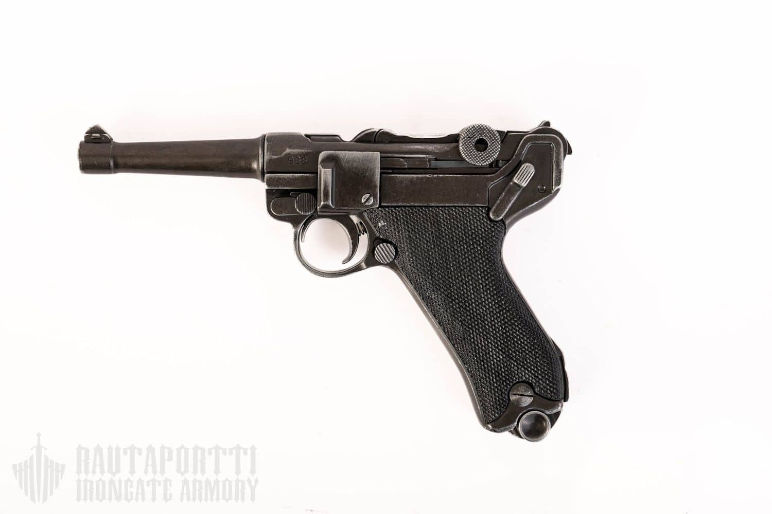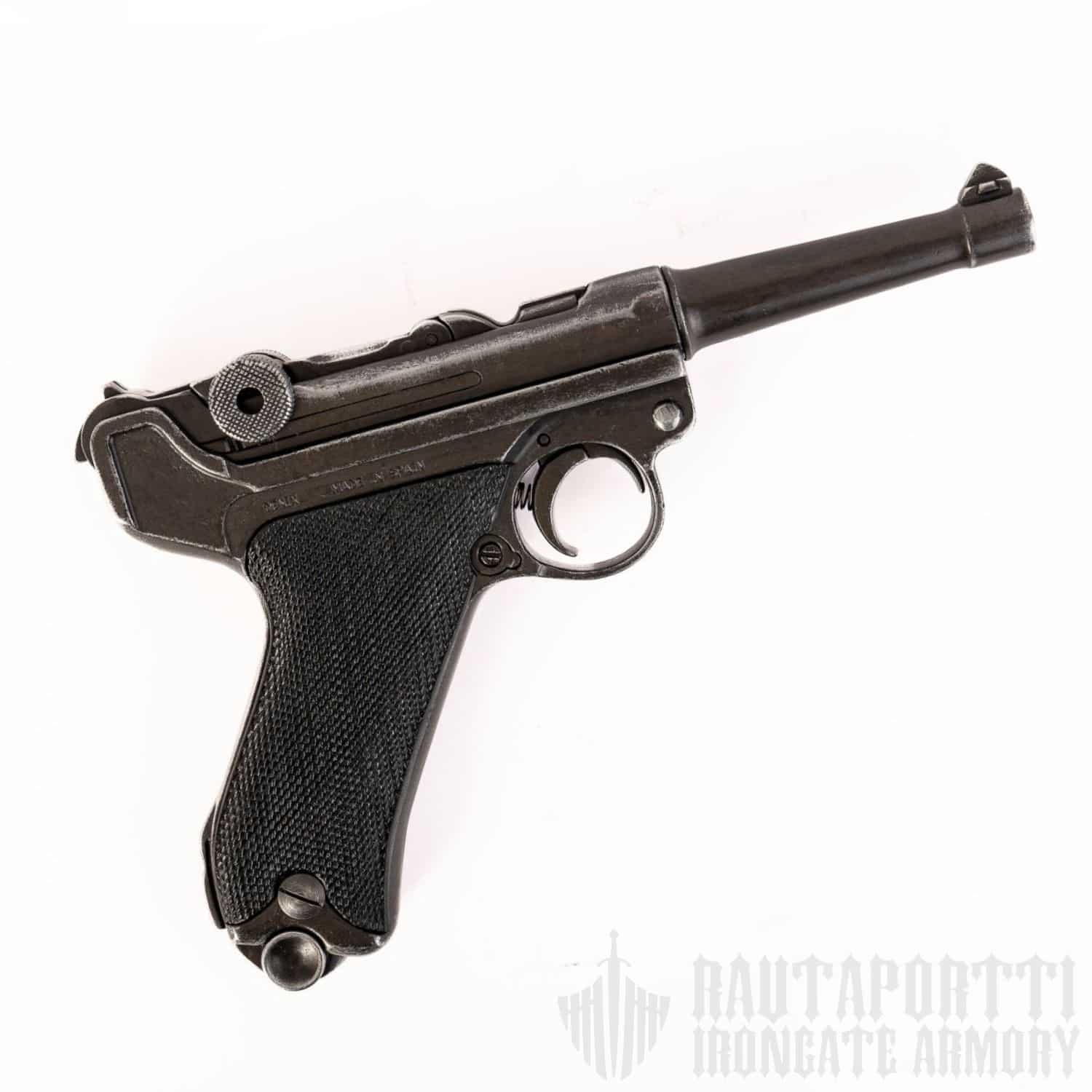 Pistoolin pystyy virittämään ja kuivalaukaisemaan kuten oikean. Luisti liikkuu ja lippaan saa irti. Tämä replika-ase on valmistettu metallivalulla ja kahvalevyt ovat mustaa muovia. Bakeliitti oli ensimmäisiä muoveja ja Luger-pistoolit olivat ensimmäisiä aseita joiden kahvoissa käytettiin tätä uutta synteettistä materiaalia. Mustat bakeliitti-kahvat olivat yleisiä alkuperäisissä Parabellum-pistooleissa.