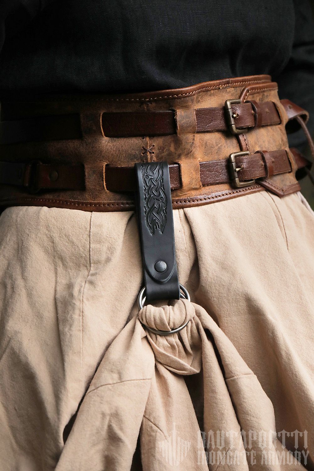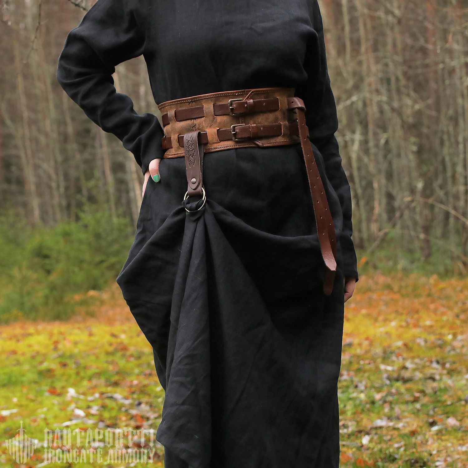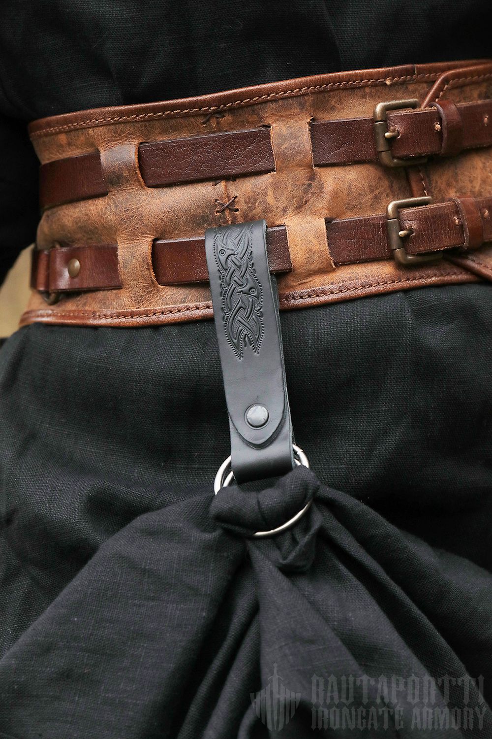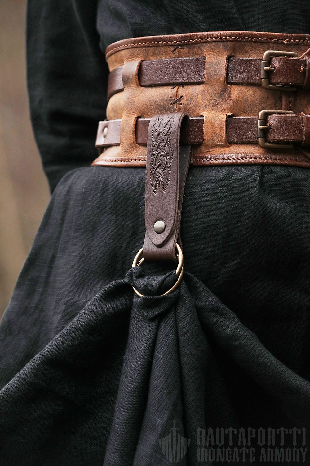Tämä keskiaikaistyylinen hamepidike on koristeltu kelttiläistyylisellä kohokuvioinnilla ja se on valmistettu korkealaatuisesta nahasta. Se on soveltuu täydellisesti keskiaikaisten hameiden runsaiden helmojen kokoamiseen.