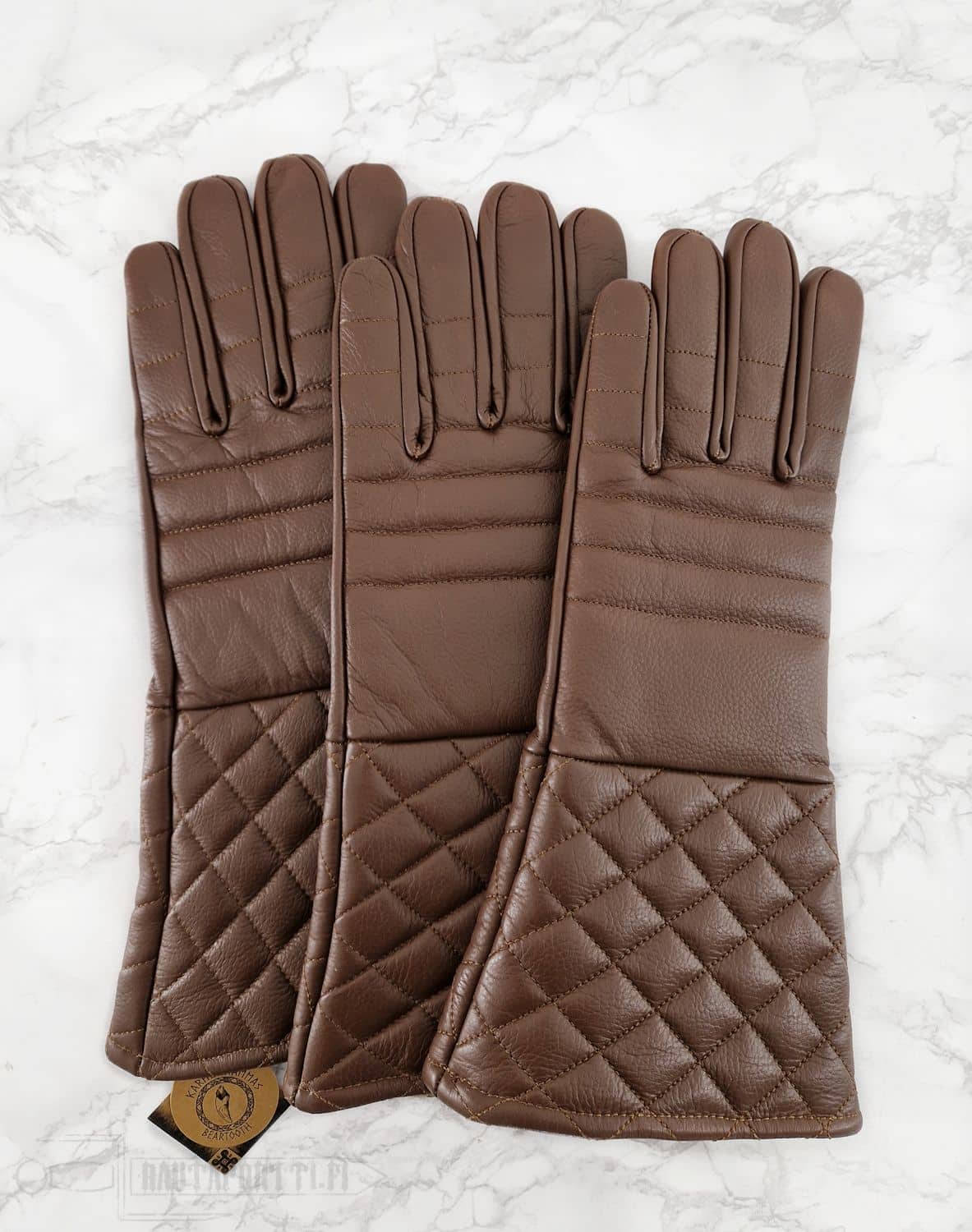 Ostan kerran vuodessa kevyitä pitkämiekkaharjoituksia varten joko windlassin kevyesti topatut nahkahansikkaat tai nämä. Kokoni on normaalisti 10 ja näissä vastaava koko on L. Hansikkaissa on miekassa hyvä pito ja ovat hieman pehmeämmät ja helpommin sisäänajettavat mallit. Sormien pituus on hieman pitempi kuin verrokissa, mutta ei haittaa miekan käsittelyä. Hyvä hanskapari elävöitykseen johon mieluummin ottaa tämän kauan kaivatun ruskean värin mustan sijaan. Nahkan hinnan nousun huomioon ottaen erittäin väärtit hanskat hintalaatusuhteiltaan. Hanskat ovat aluksi hieman liukkaat käsittelyn vuoksi, mutta sopeutuvat kunhan hieman käytössä kuluvat. Peukalon hangan saumat kestävät about vuoden/pari jos ovat kovalla harjoituskäytöllä.