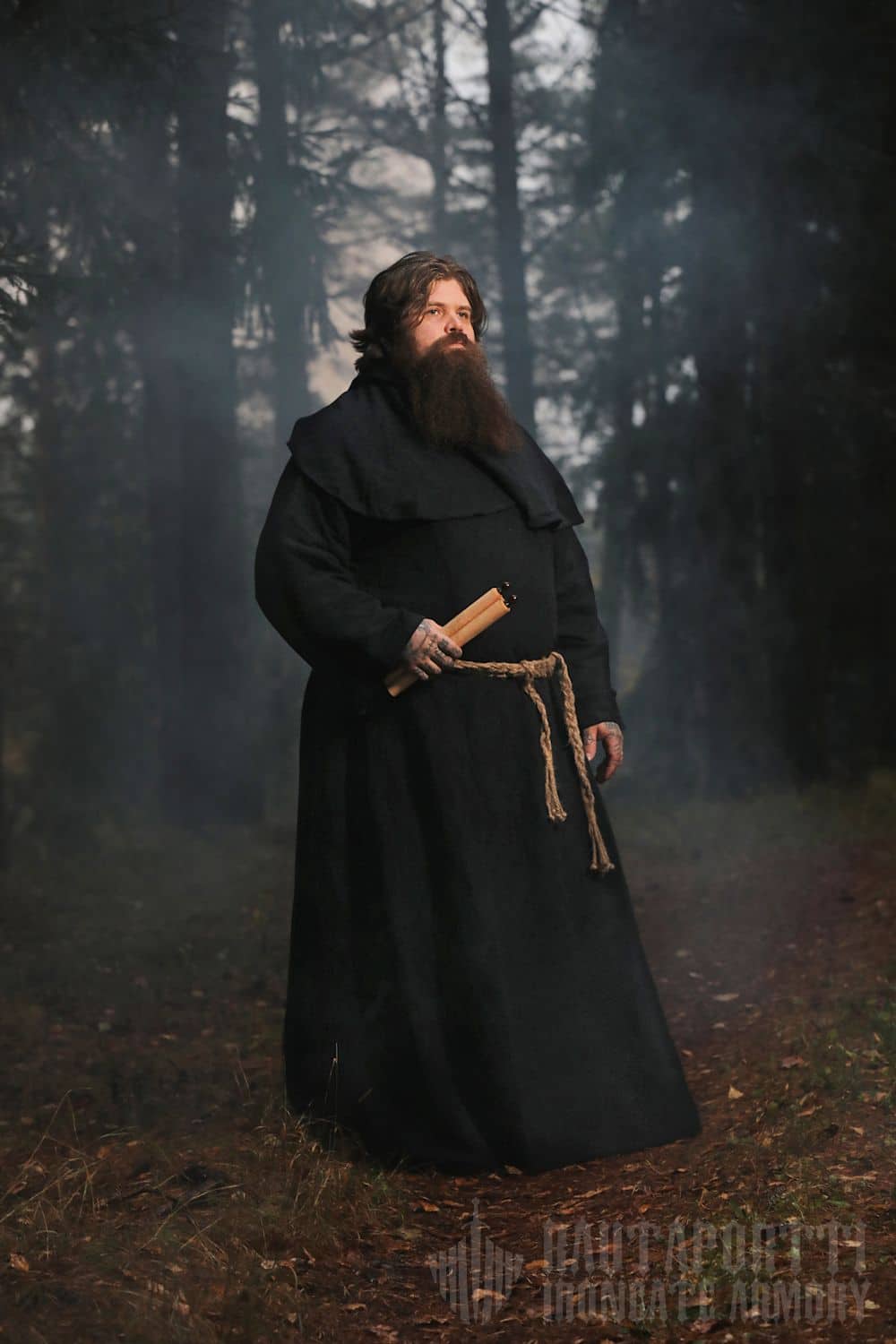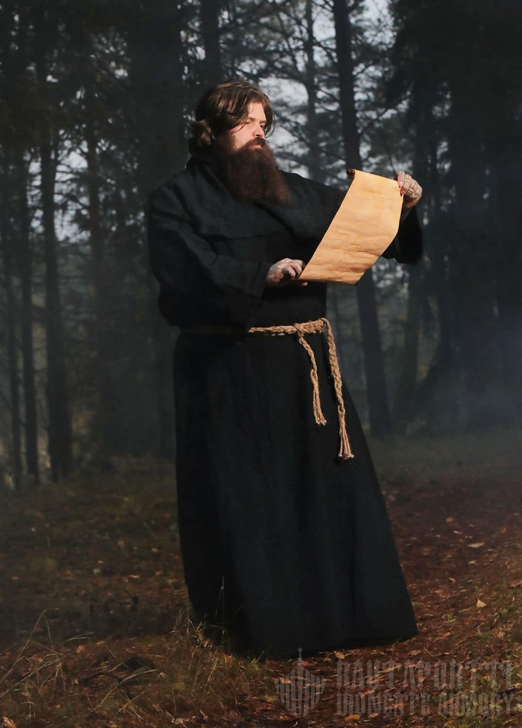 Tämä kirjoituskäärö on valmistettu antikoidusta puuvillapaperista, joka on rullattu puisten sauvojen ympärille. Sitä koristaa musta nyöri, jonka päissä on tupsut. Käärö soveltuu esimerkiksi karttojen tai taideteosten piirtämiseen ja maalaamiseen, taikojen, ajatusten tai havaintojen kirjaamiseen tai rekvisiitaksi historian elävöitykseen, roolipeleihin tai larppaamiseen.