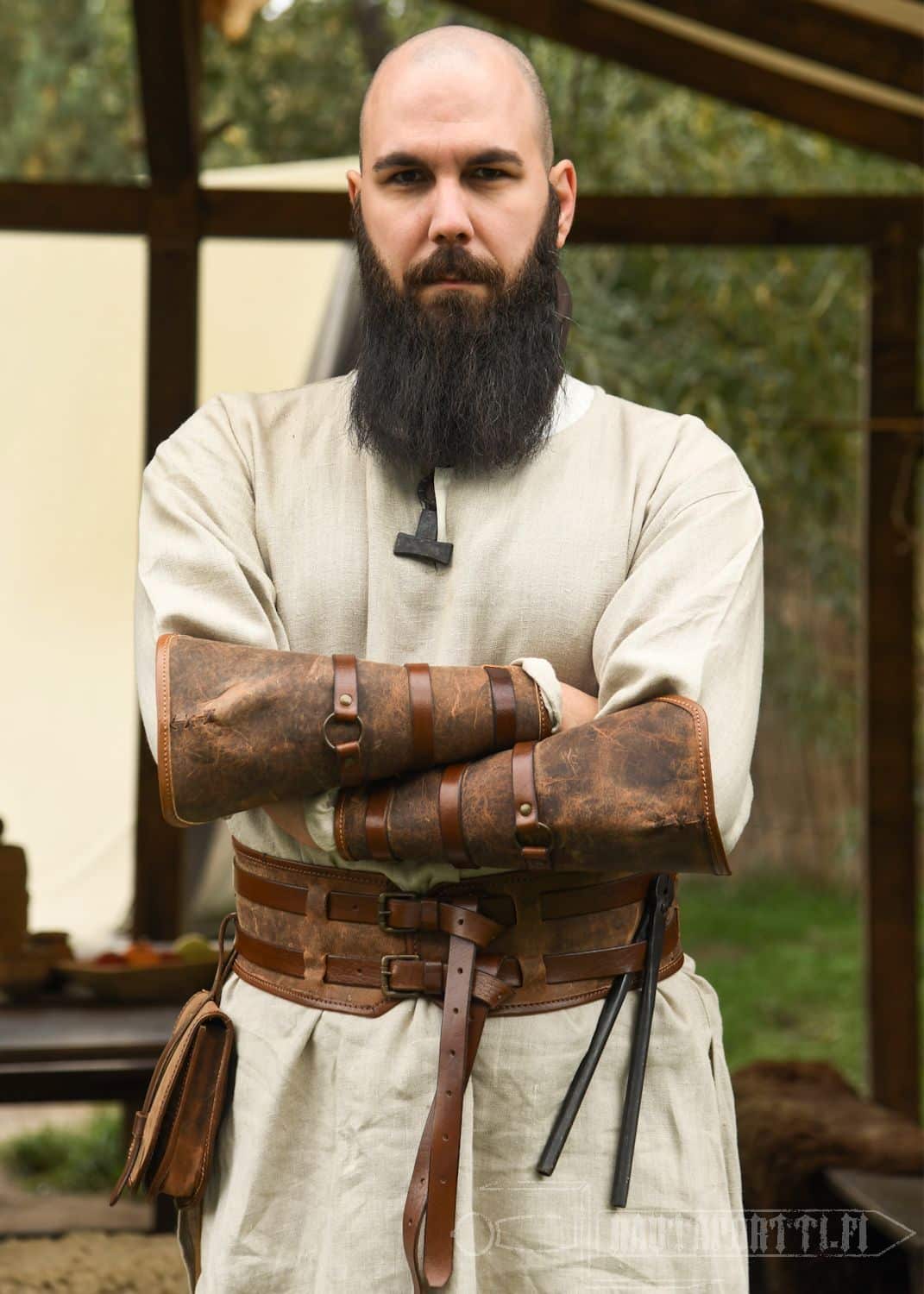 Tämä vyö yhdistää toiminnallisuuden ja esteettisen muotoilun, joten se ei ole vain mukavakäyttöinen, vaan myös tyylikäs lisä moneen erityyppiseen asuun. Onpa hahmosi sitten taitava seppä tai rohkea viikinki, tämä leveä vyö antaa viimeisen silauksen asuun kuin asuun. Tämä korkealaatuinen vyö on täydellinen valinta, on käyttötarkoitus sitten LARP, cosplay, historianelävöittäminen tai tyylikäs lisä historialliseen asuun.