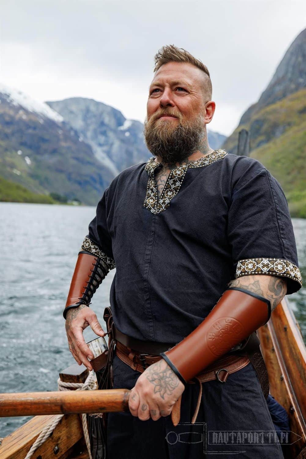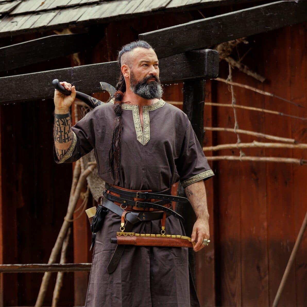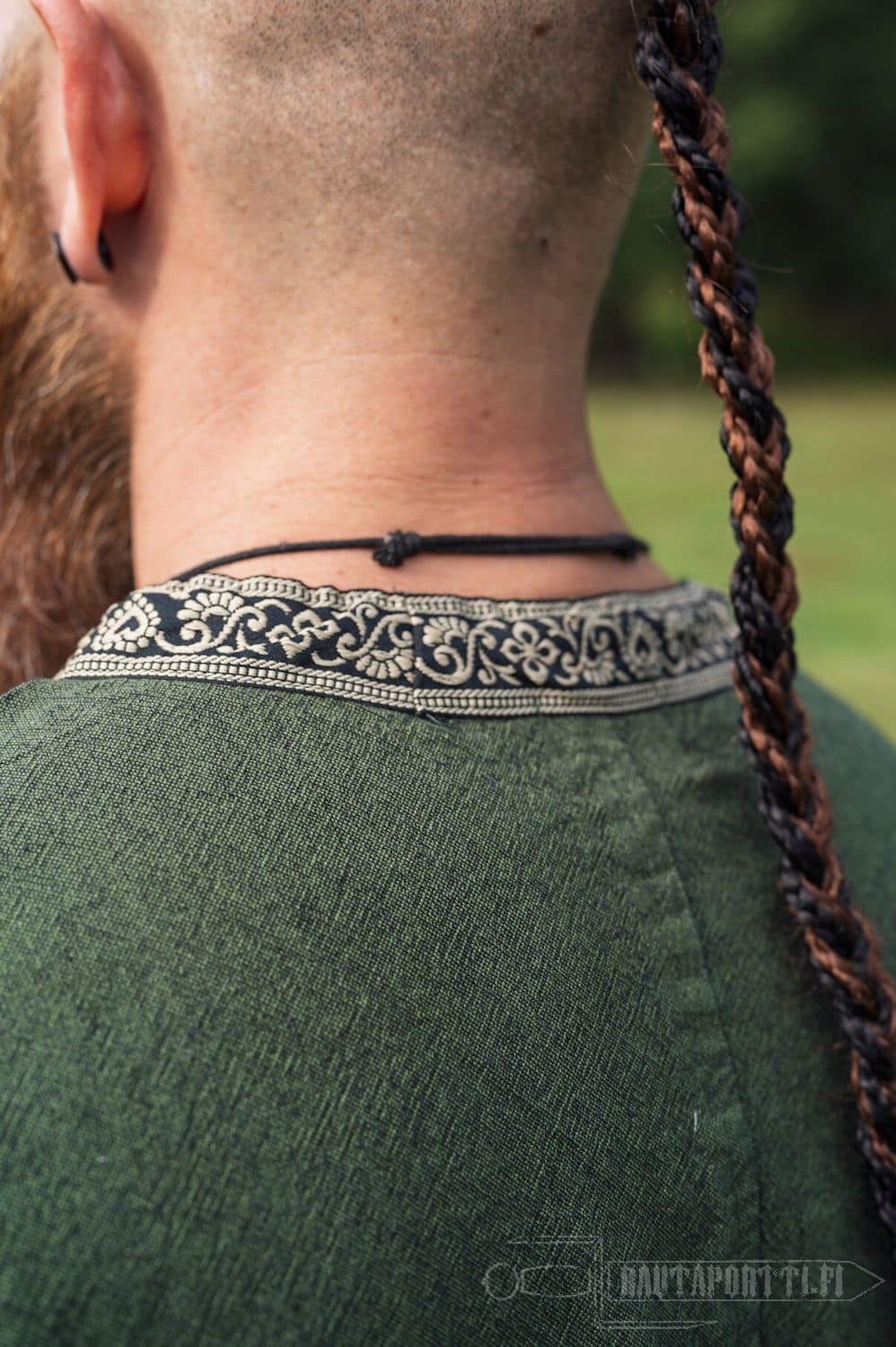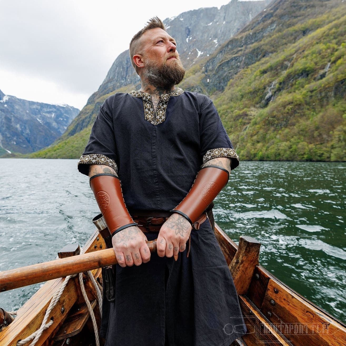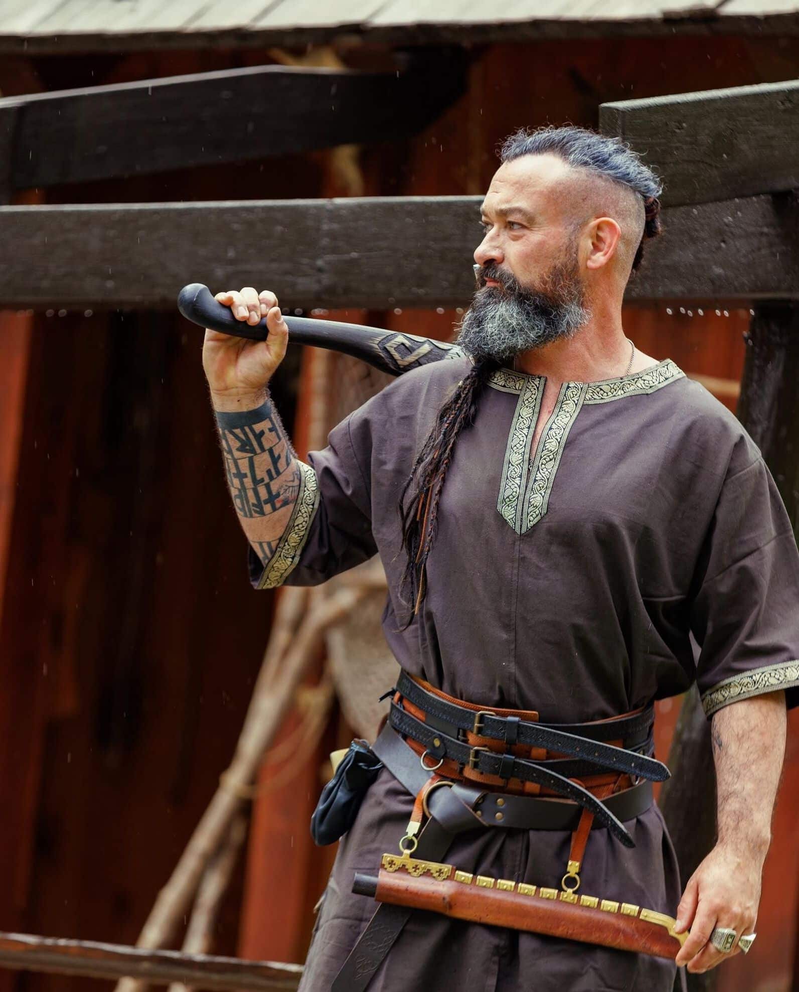 Tämä tunika sopii historiallisestikin niin miehille kuin naisille. Tämän lyhythihaisen tunikamallin helmaosassa on pitkät halkiot edessä ja takana, jolloin on saatu lisää liikkumatilaa jaloille. Erityisesti taistelussa mahdollisimman vapaa jalkojen liikkuvuus on tärkeää.