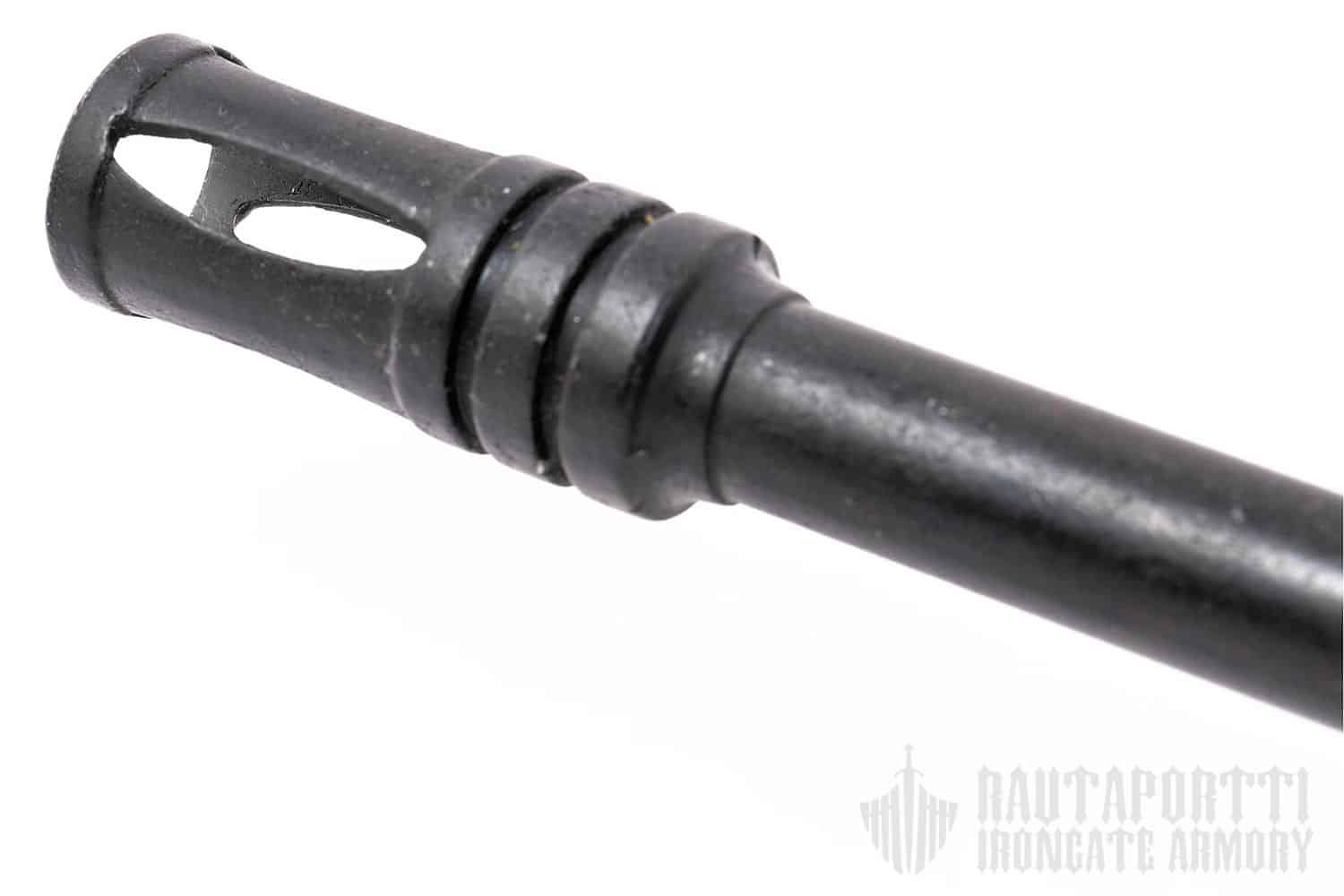 Aseen runko ja piippu ovat metallia ja tukki, kahva ja kädensija muovia, kuten alkuperäisessäkin.