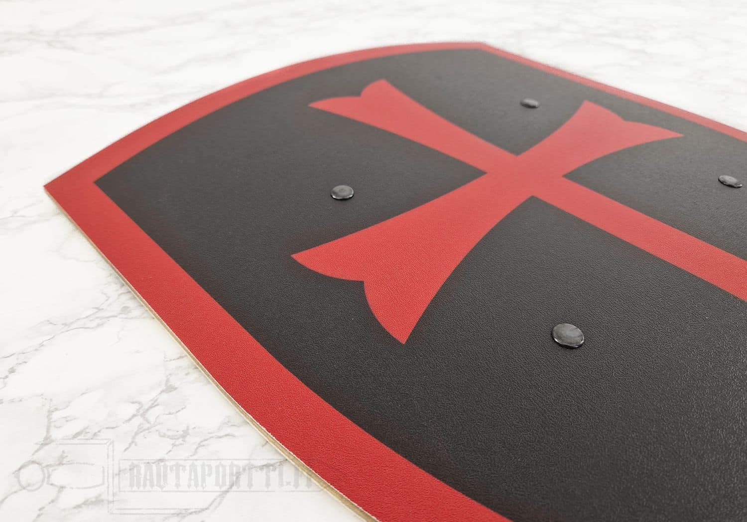 Tämä musta leijanmallinen kilpi on koristeltu punaisella temppeliherrain ristillä. Temppeliherrat olivat kristillinen sotilasjärjestö, joka perustettiin 1100-luvulla ristiretkien aikana ja temppeliherrat olivat ehdottomasti yksi koko keskiajan parhaimmista sotajoukoista; asialleen vannoutuneita eliittisotilaita. He olivat tunnettuja rohkeudestaan taistelussa ja sitoutumisestaan suojella kristillisiä pyhiinvaeltajien, jotka matkustivat Pyhälle Maalle. Järjestö sai vaikutusvaltaa ja keräsi rikkauksia ympäri Eurooppaa ja tuli hyvin voimakkaaksi valtatekijäksi.