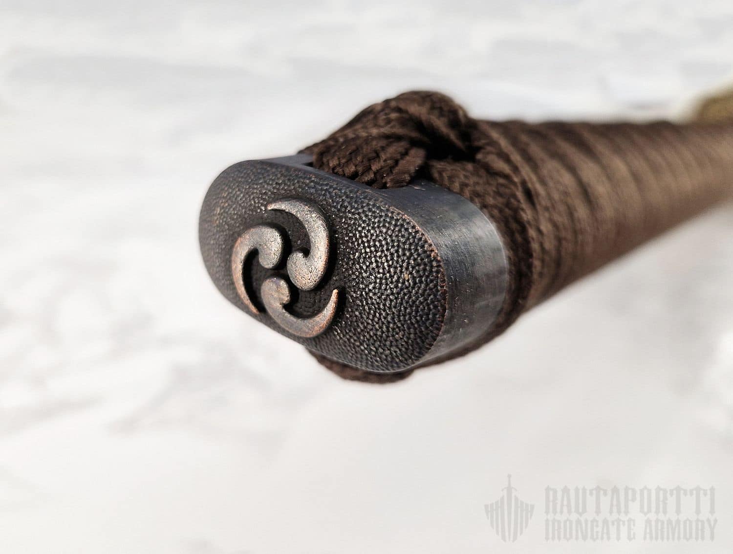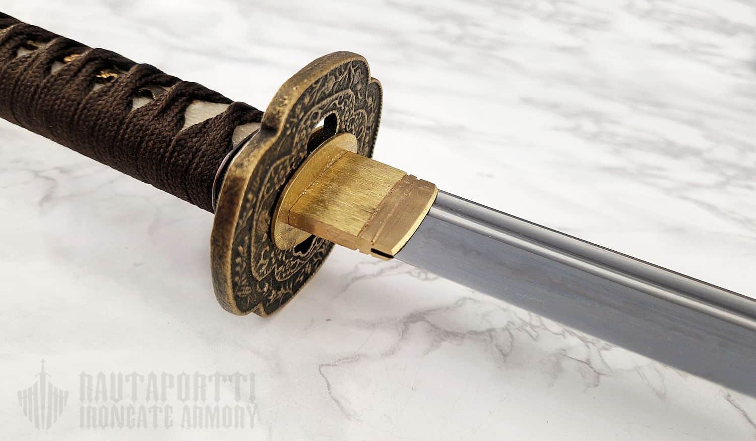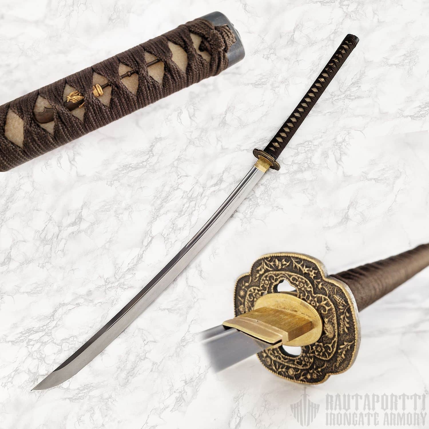 - Kahvan/Tsukan materiaalit: Kovapuu, rauskun nahka ja silkki