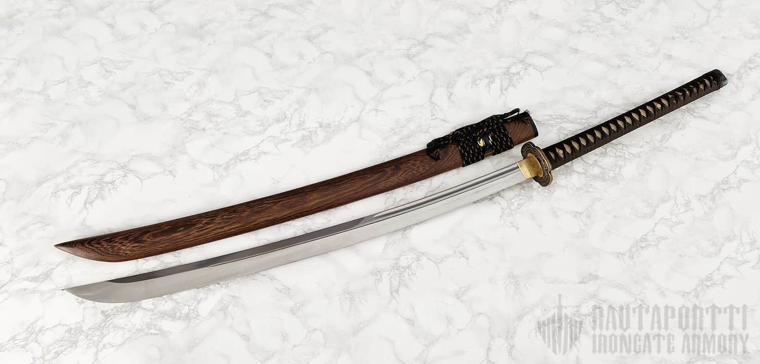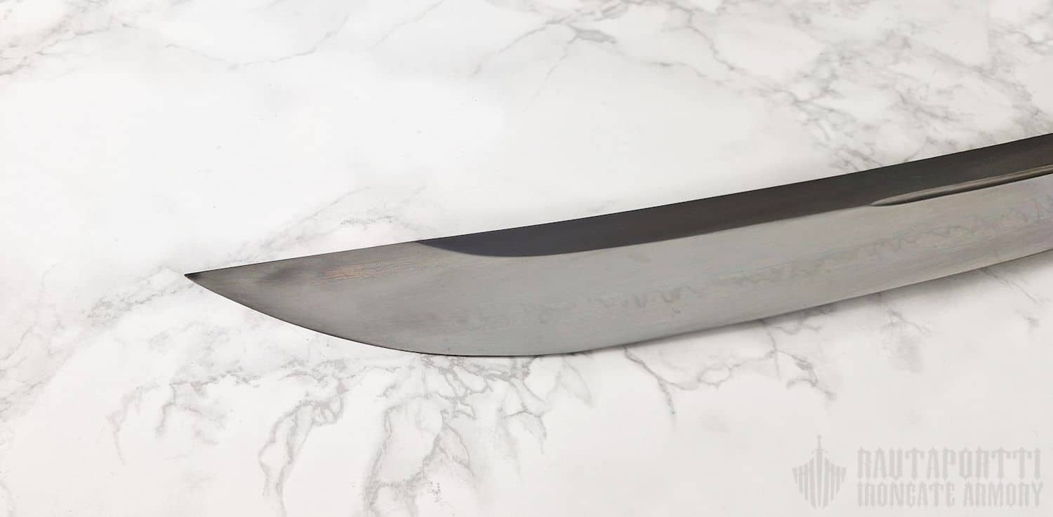 Terä on hieman lyhyempi kuin tavallisessa katanassa, mutta selvästi leveämpi sekä tyvestä että kärjestä. Kaareva muoto tarjoaa pitkän leikkaavan pinnan ilman, että kokonaispituus kasvaa liikaa. Unokubi-zukuri-rakenne keventää terää, mikä tekee tästä jykevästä miekasta yllättävän ketterän ja tasapainoisen. Paino ja terän kaarevuus yhdessä takaavat erinomaisen leikkausvoiman.