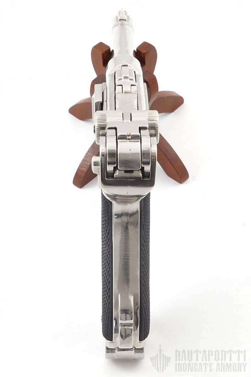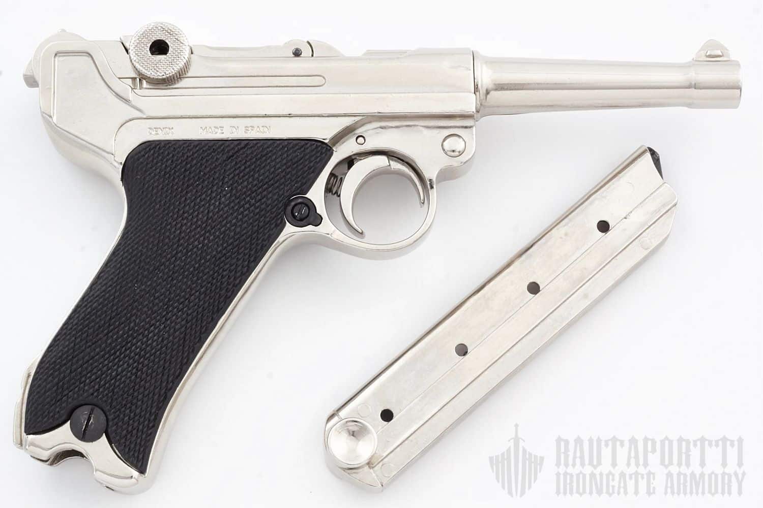 Pistoolin pystyy virittämään ja kuivalaukaisemaan kuten oikean. Luisti liikkuu ja lippaan saa irti. Tämä replika-ase on valmistettu metallivalulla ja kahvalevyt ovat mustaa muovia. Bakeliitti oli ensimmäisiä muoveja ja Luger-pistoolit olivat ensimmäisiä aseita joiden kahvoissa käytettiin tätä uutta synteettistä materiaalia. Mustat bakeliitti-kahvat olivat yleisiä alkuperäisissä Parabellum-pistooleissa.