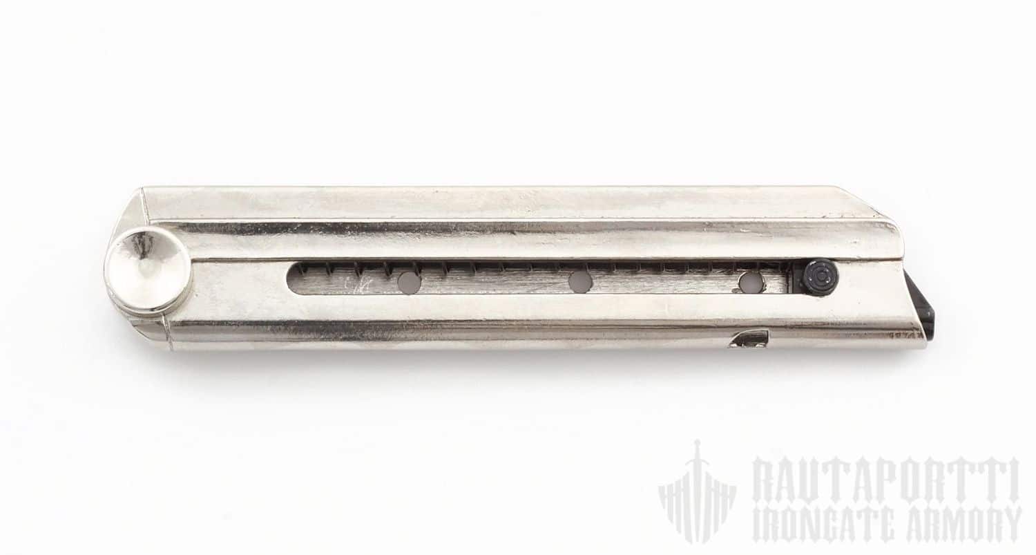 - Tämä ase on tarkka kopio alkuperäisestä. Asejäljitelmä on kokonsa ja painonsa puolesta kuin alkuperäinen ja sen mekanismit ovat toimivia. Pistoolin pystyy virittämään ja kuivalaukaisemaan kuten oikean. Luistin saa vedettyä taakse. Valmistusmateriaalista johtuen aseen mekanismit eivät loputtomiin kestä aseen virittämistä ja laukaisua.