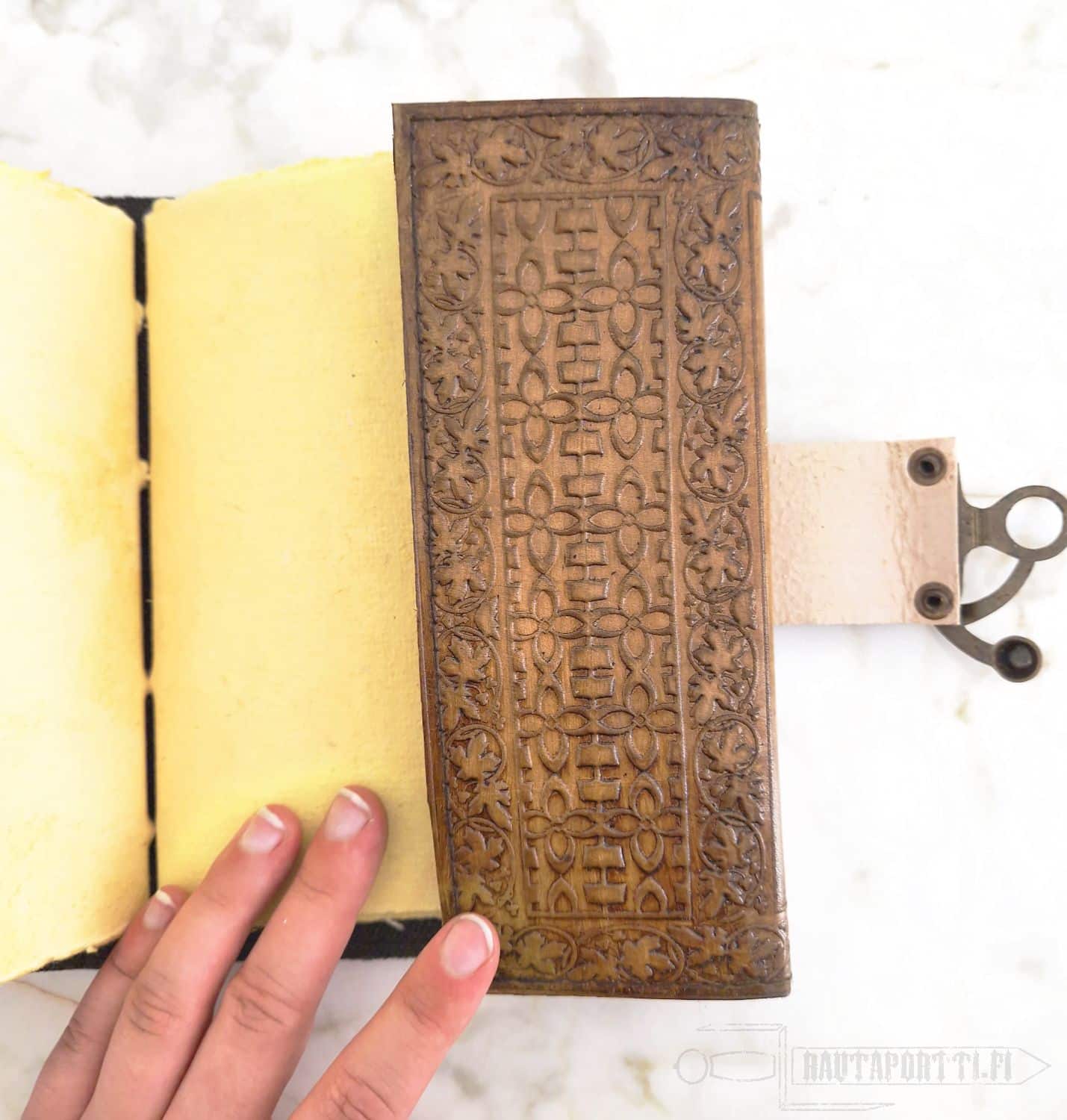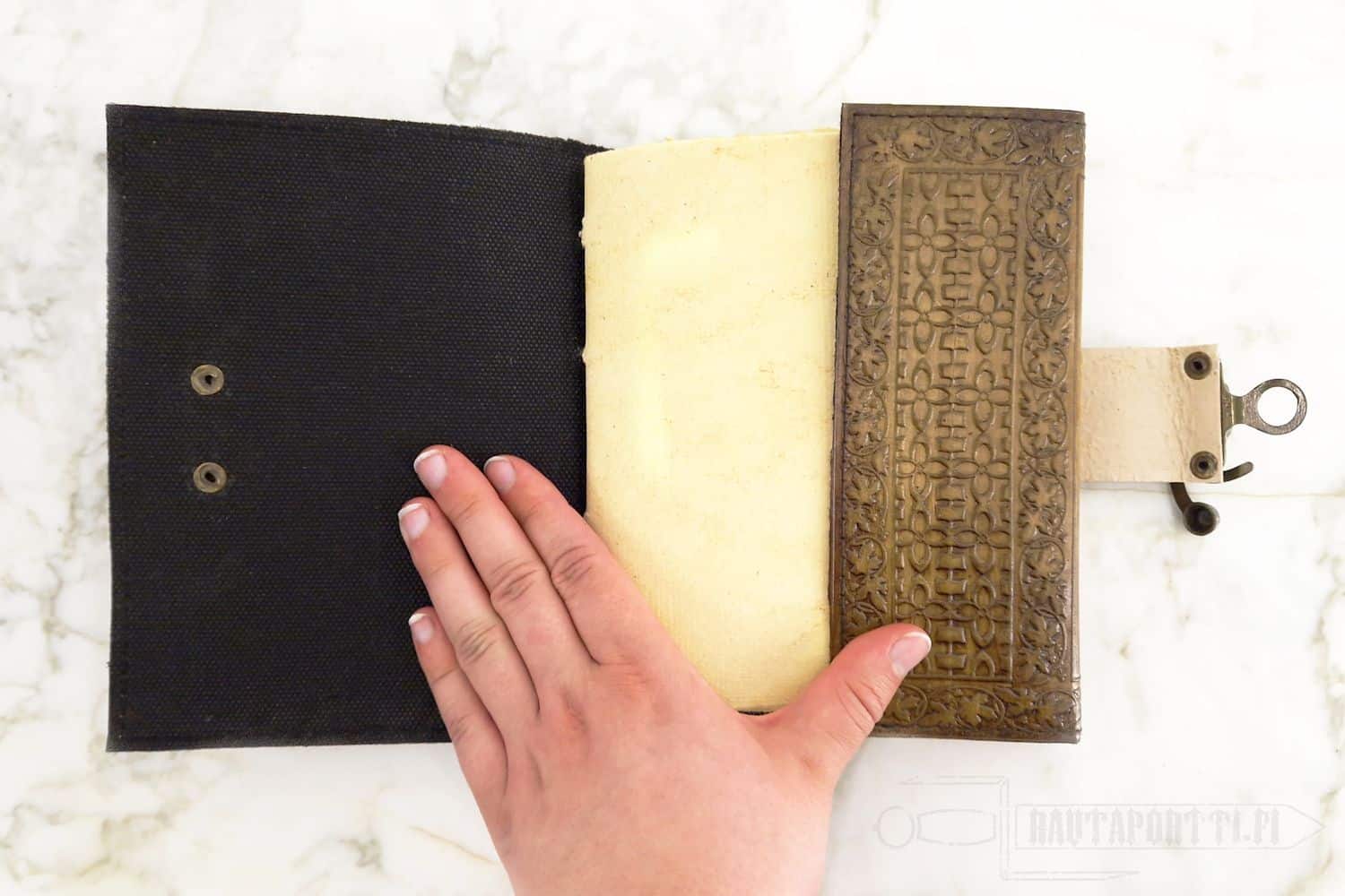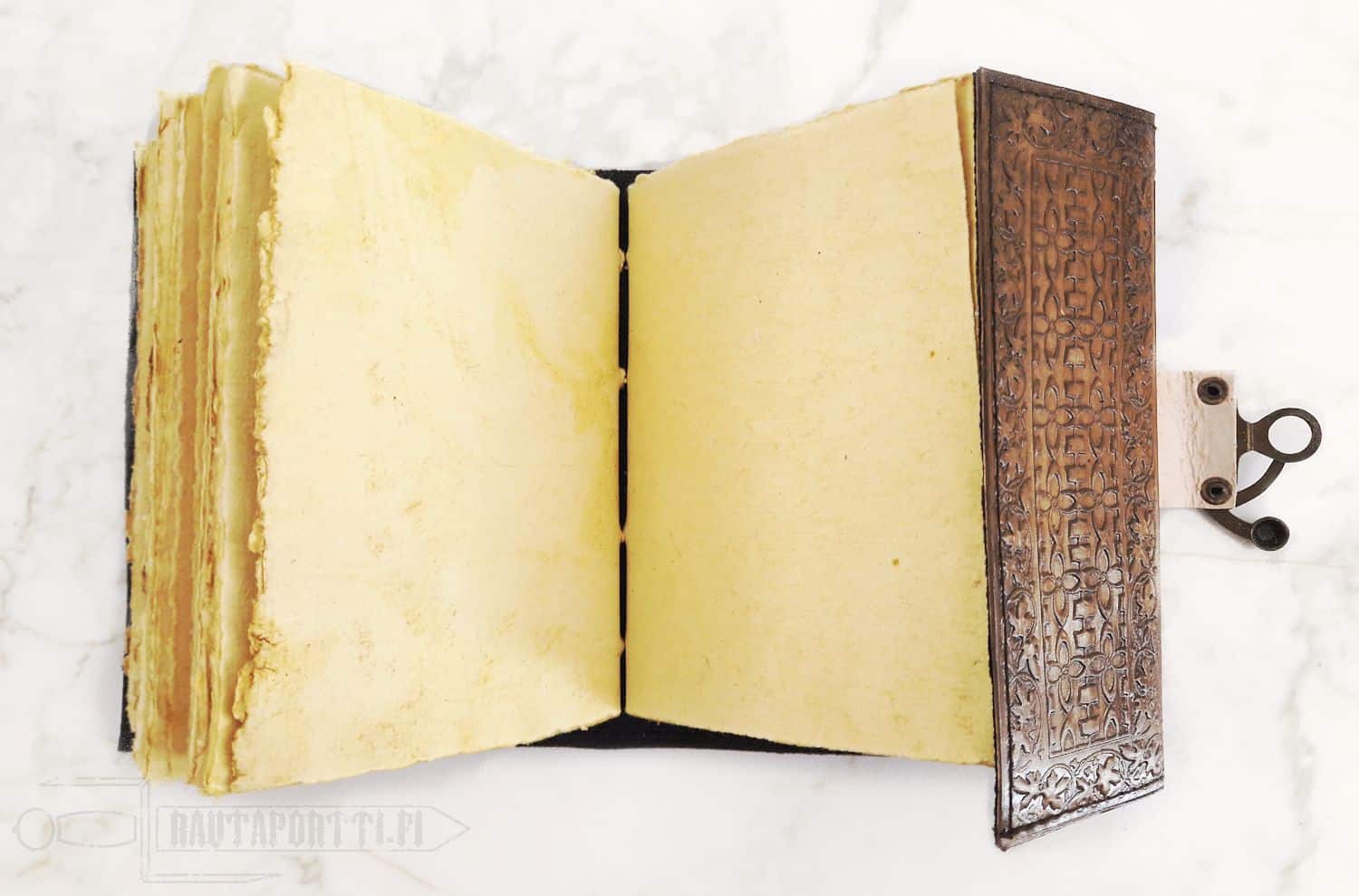 - Nahkakantinen kirja tyhjillä sivuilla