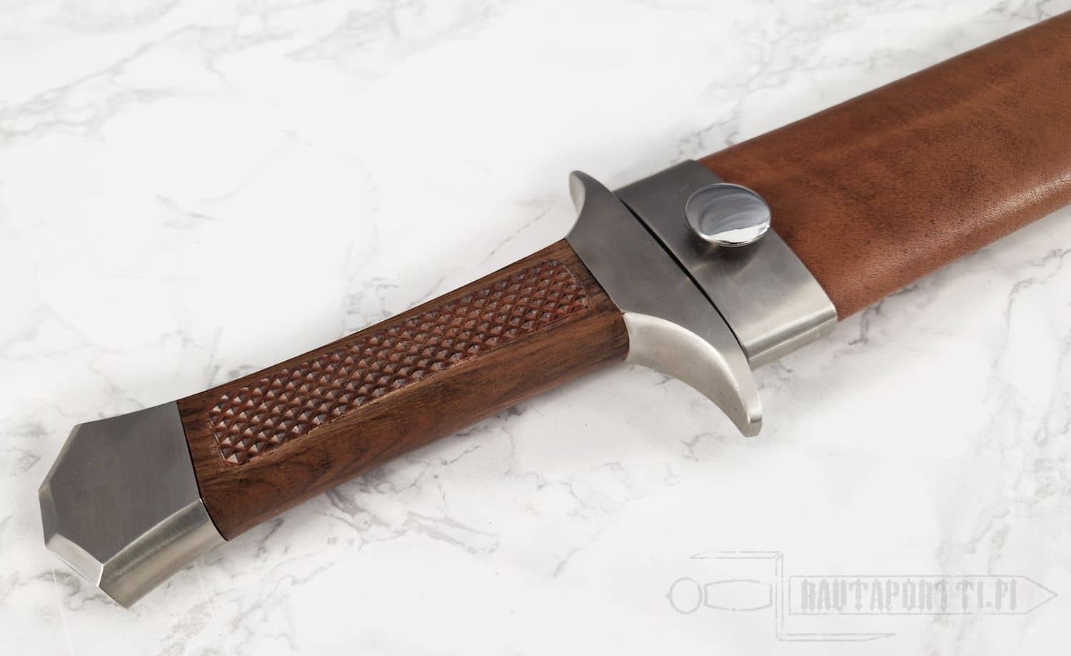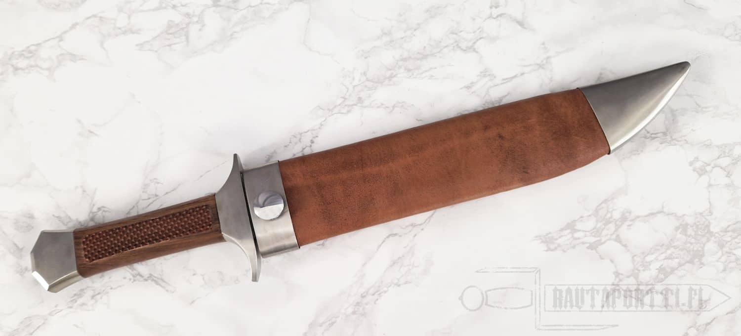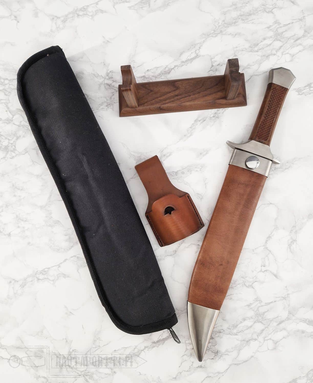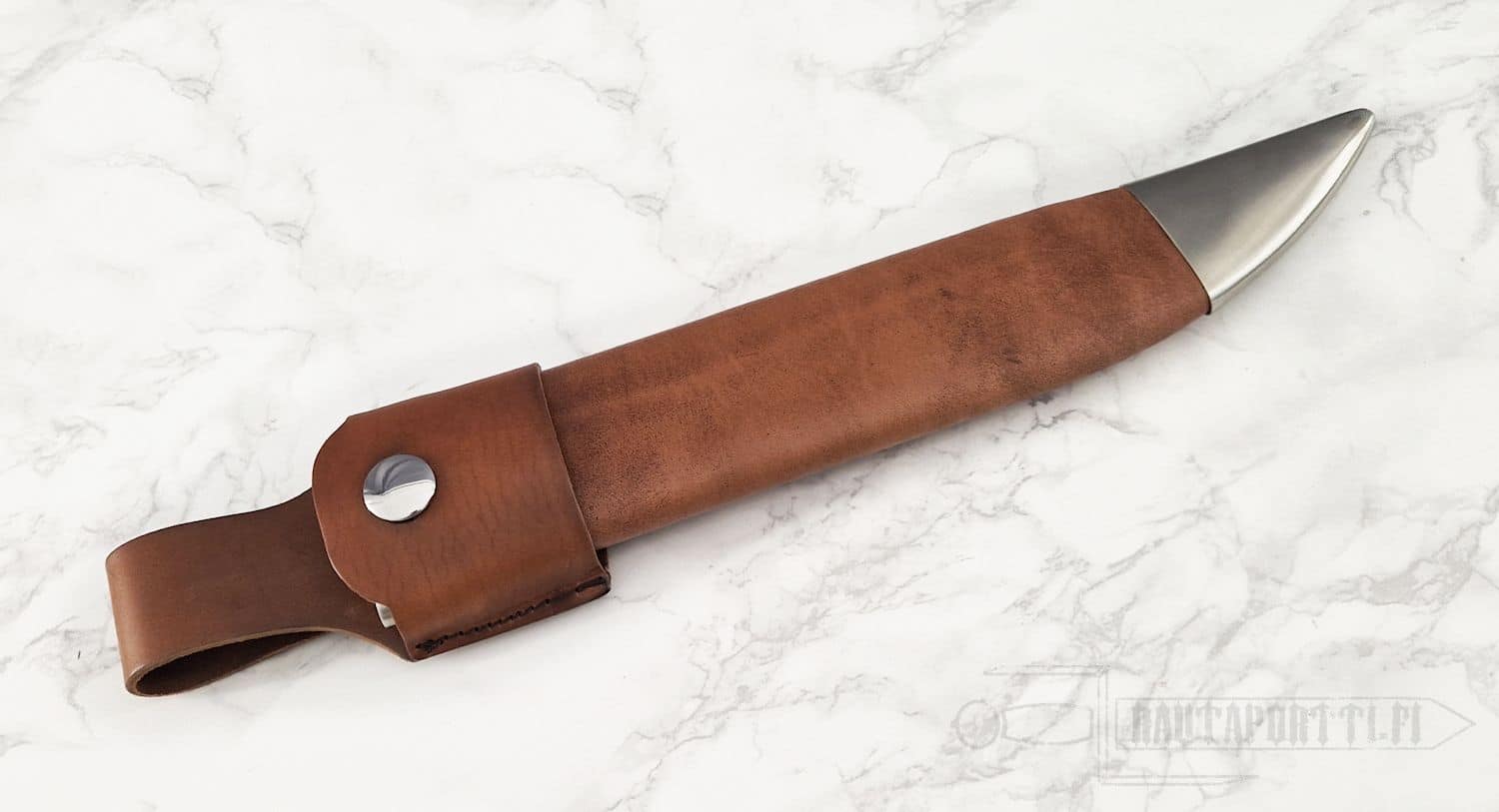 - Sisältää nahkapäällysteisen tupen ja vyöpidikkeen