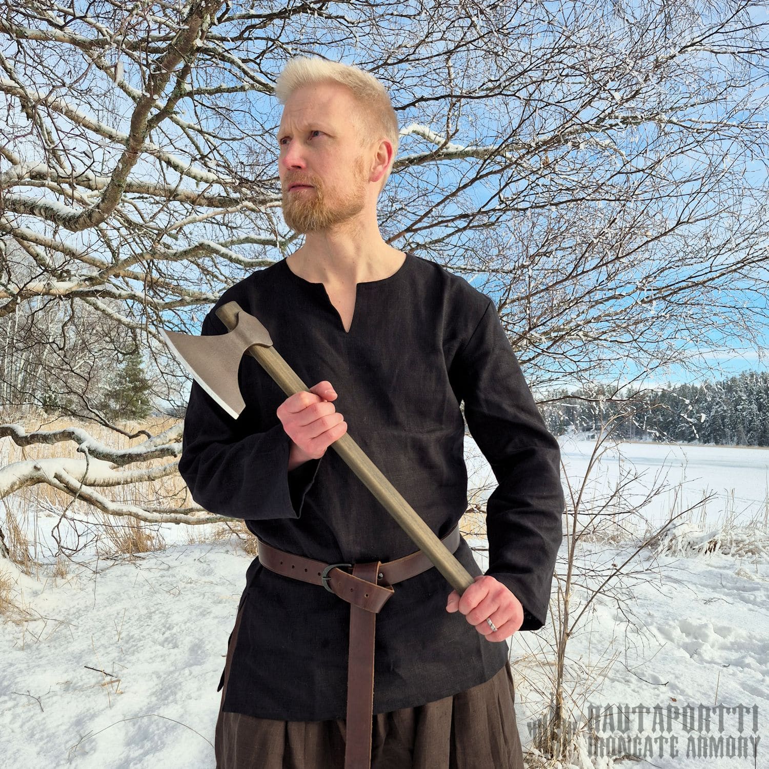 Tilaamani pellavatunika oli juuri sellainen kuin halusin eli “muinaisen karhea”. Miellyttävä vaate kaiken kaikkiaan. Kokokin osui kerralla oikeaan. Toimitus oli jälleen huippunopeaa, maanantaina tilaus, tiistaina paketti kädessä!