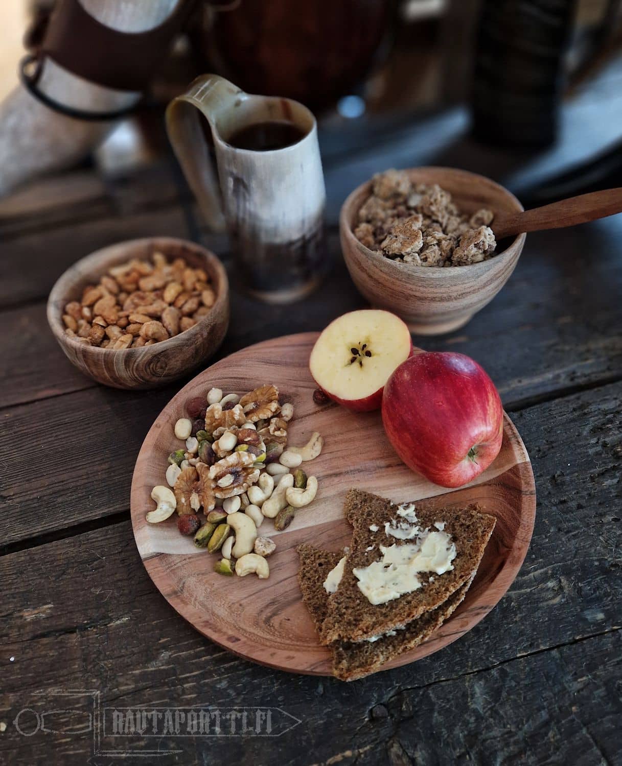 Tämä puukulho on valmistettu akaasiapuusta. Muinaiset egyptiläiset sekä heprealaiset pitivät akaasia ikuisen elämän ja kuolemattomuuden symbolina sen kestävyyden ja ikivihreyden johdosta. Tämä kulho sopii täydellisesti larppaukseen tai historianelävöitykseen niin antiikin aikaan, viikinkiajalle kuin keskiajallekin.