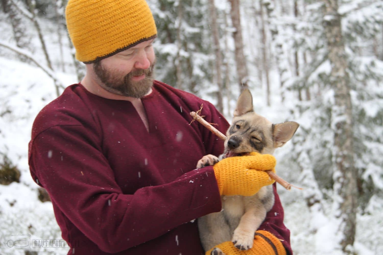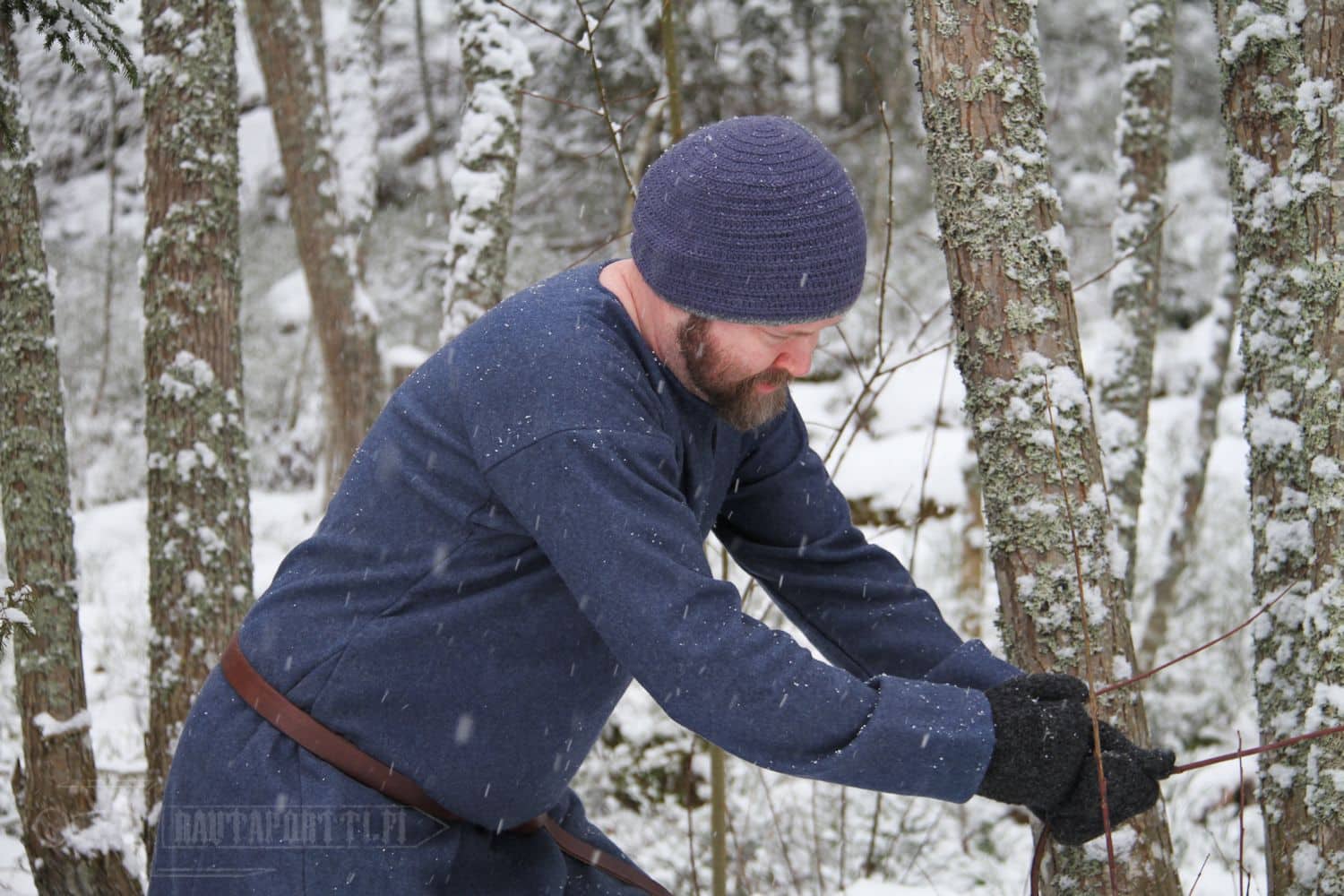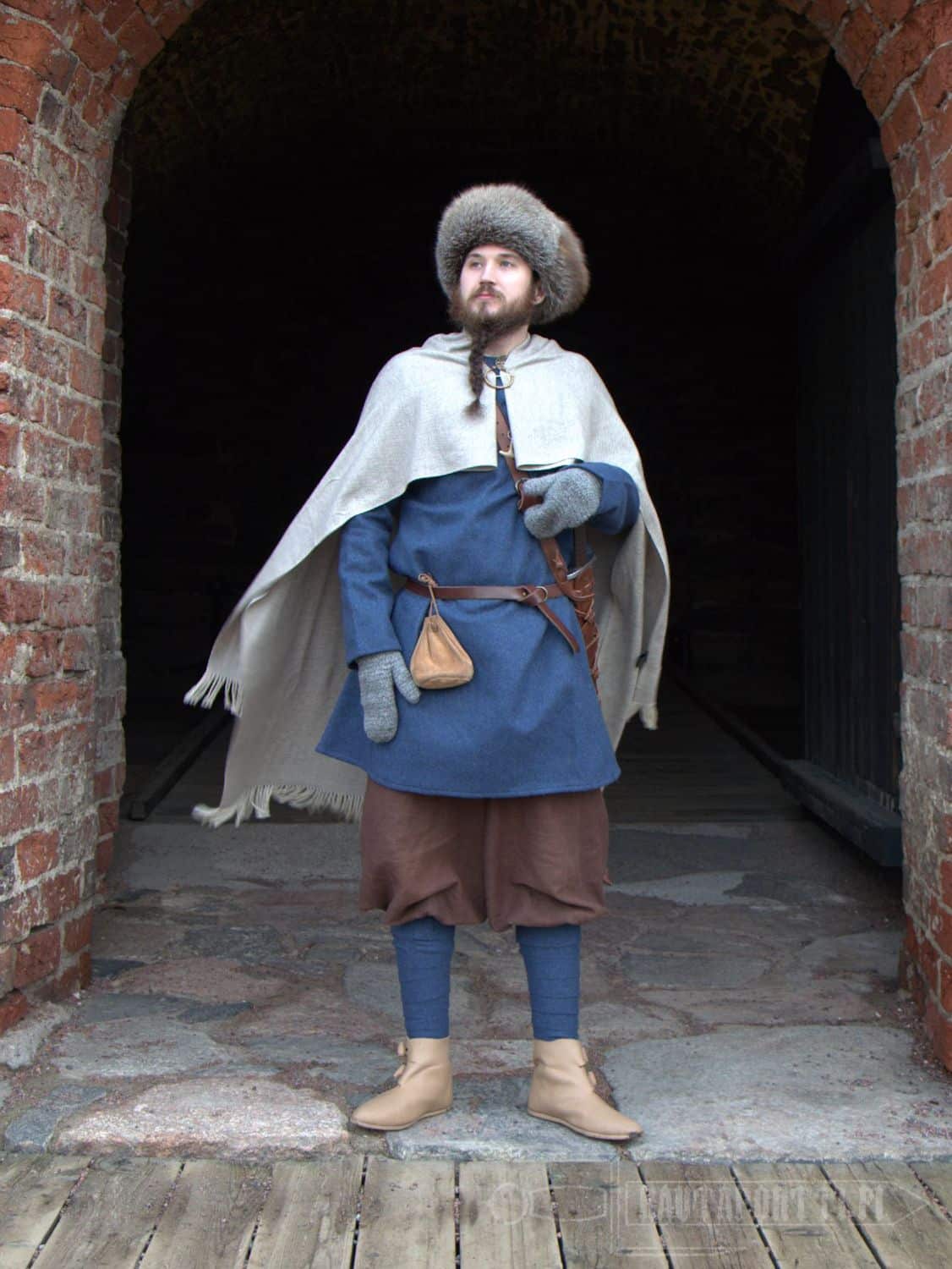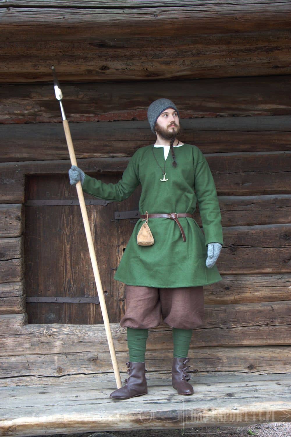 Pohjolassa vaatemuoti muuttui hitaasti ja vaikka malli onkin jo rautakaudelta, niin sattoi tällaiseen vaatteeseen törmätä vielä uuden ajan alun maaseudullakin. Yksinkertaisen koristelemattomana tämä tunika käy niin kauppiaalle kuin soturillekin, sekä tietysti kaikkiin arkisempiin kotitilan töihin. Villainen tunika lämmittää mukavasti seikkailijaa niin Pohjanlahden kuin Pohjanmerenkin ylityksillä. Koska huovutettu villa on luontaisesti jonkin verran vesitiivis, se suojaa myös tihkulta ja yllättäviltä kuuroilta syksyisessä ja talvisessa metsässä.