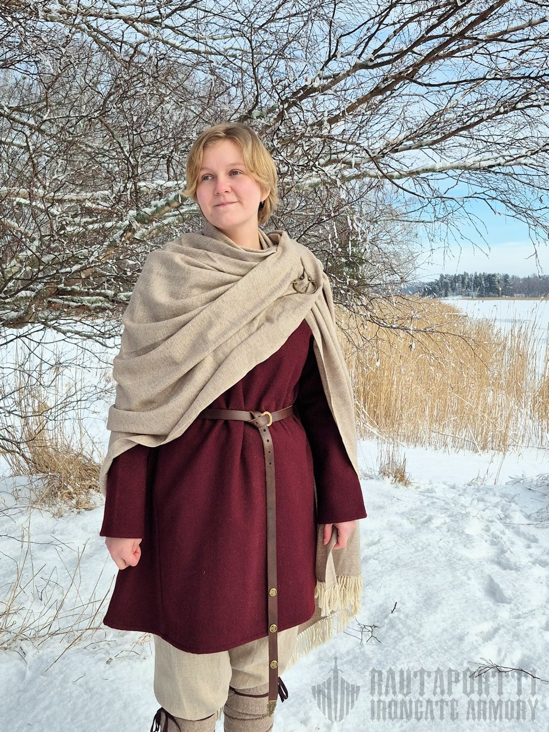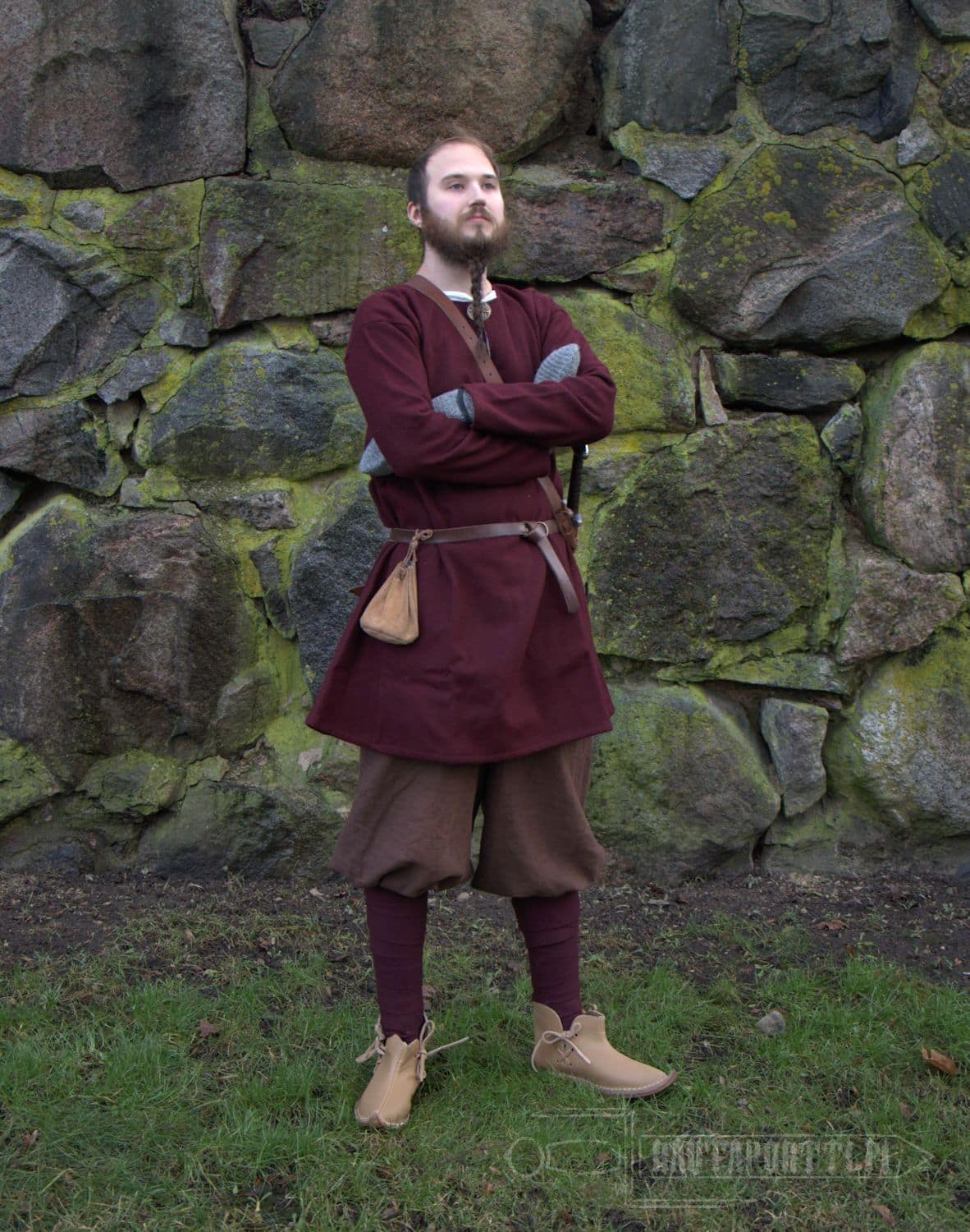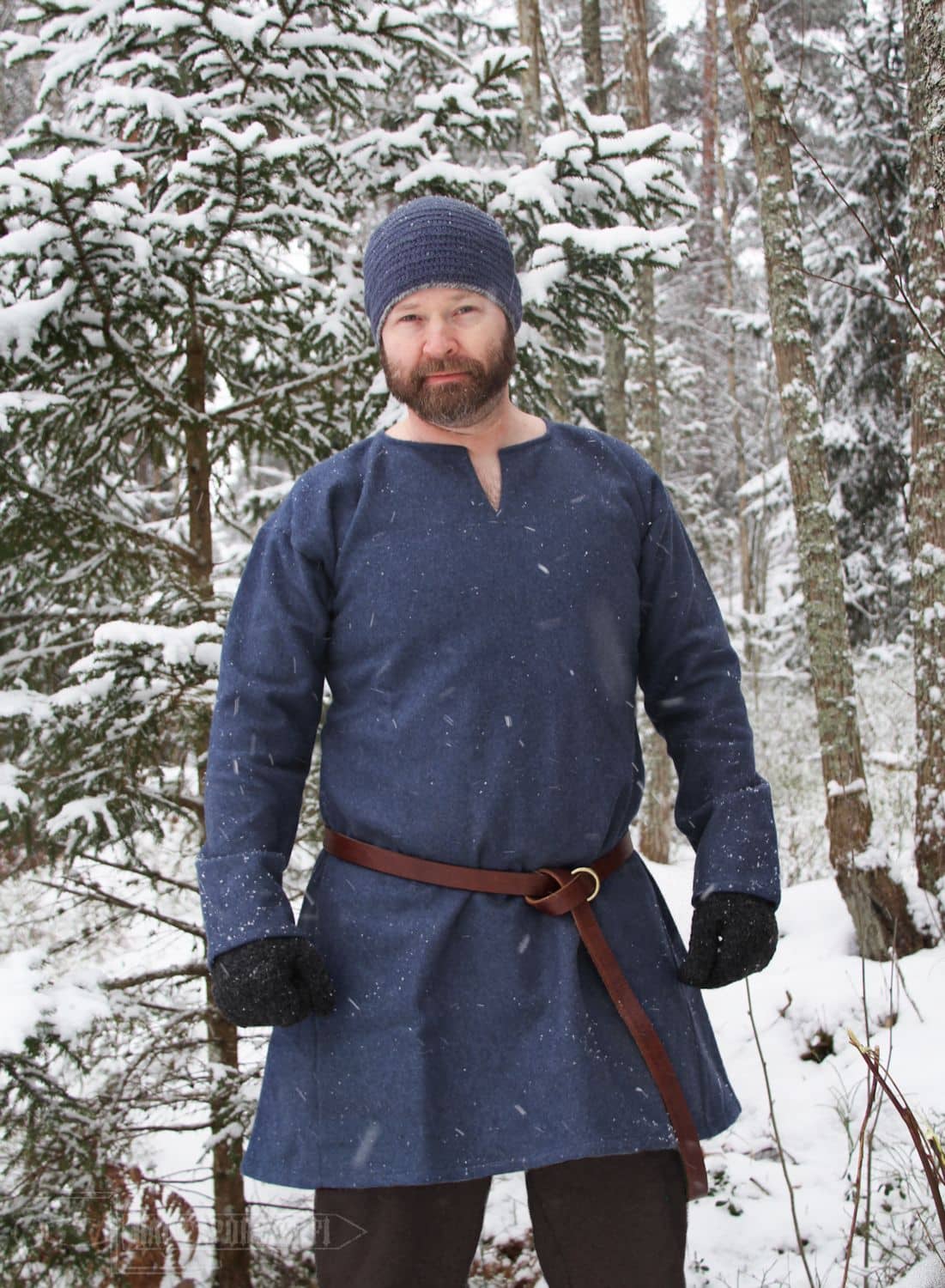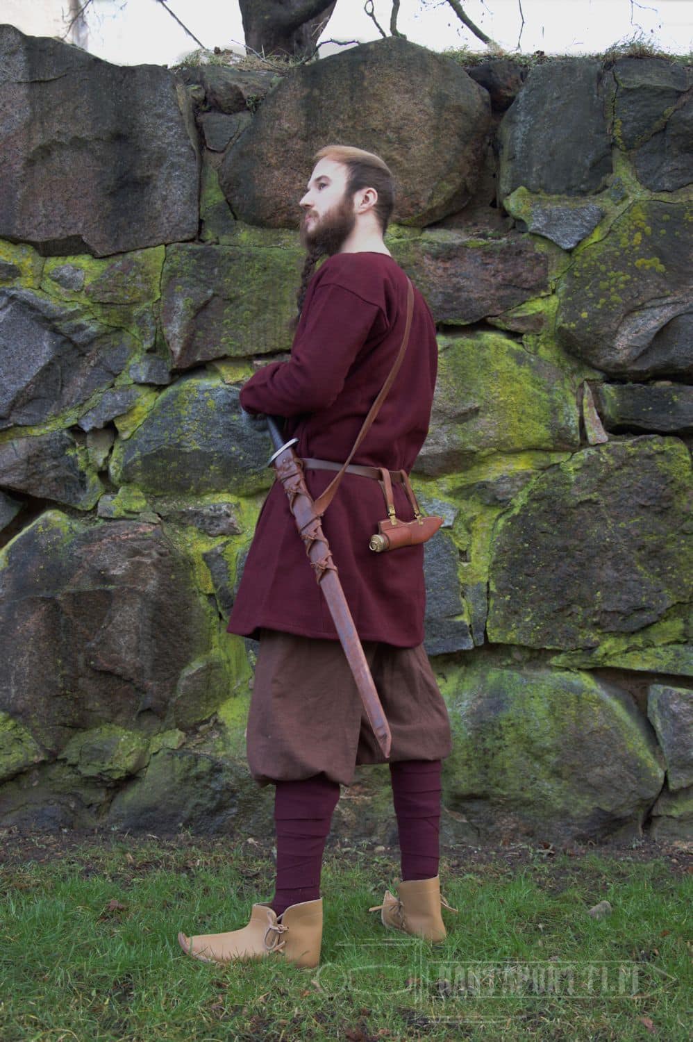 Tämä tunika sopii historiallisestikin niin miehille kuin naisillekin. Tämän perusmallin helmaosa levenee alaspäin, mikä lisää väljyyttä ja antaa liikkumatilaa jaloille. Erityisesti taistelussa mahdollisimman vapaa jalkojen liikkuvuus on tärkeää.