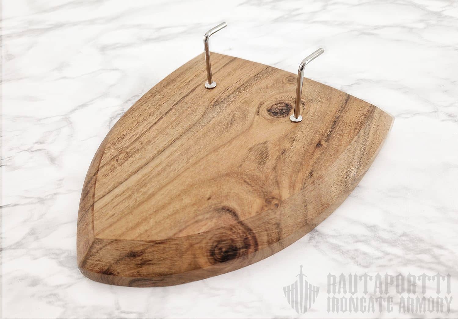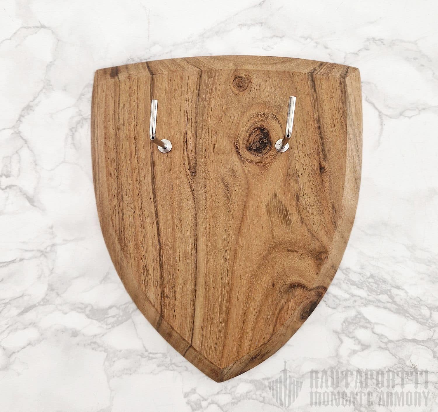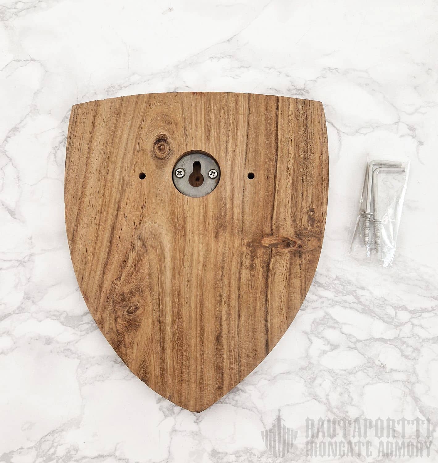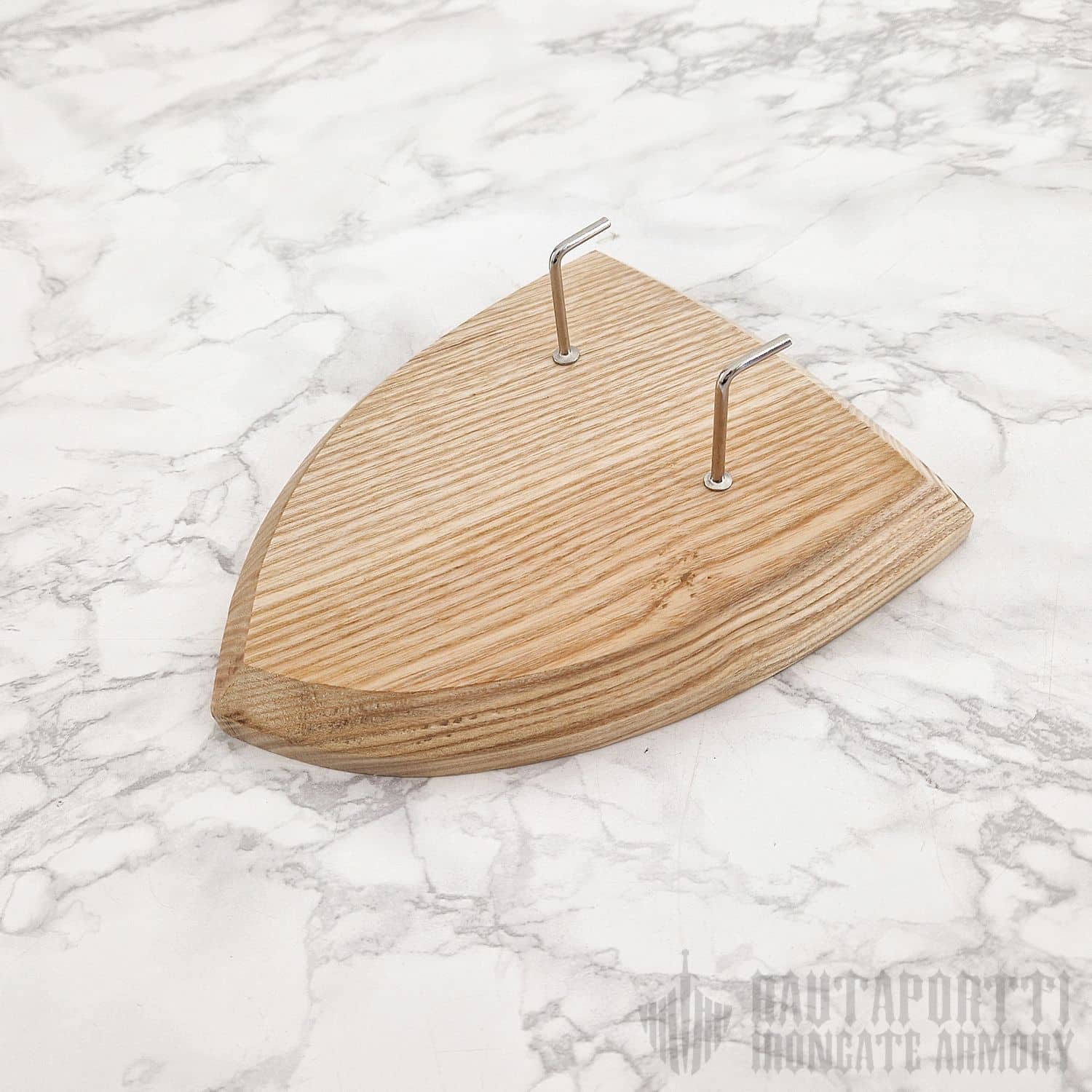 Nyt saat ripustettua koko kokoelmasi esille! Tähän seinätelineeseen istuu suurin osan markkinoilla olevista eurooppalaisista miekoista ja tikareista. Takana olevan vahvistetun reiän ansiosta telineen saa helposti ripustettua seinälle yhdellä ruuvilla tai naulalla. Seinäteline on klassisen keskiaikaisen kilven mallinen, ja sitä on saatavilla sekä akaasiasta että vaahterasta valmistettuna. Akaasia on puutyyppinä tummemman sävyinen, kun taas vaahtera on vaaleampi.
