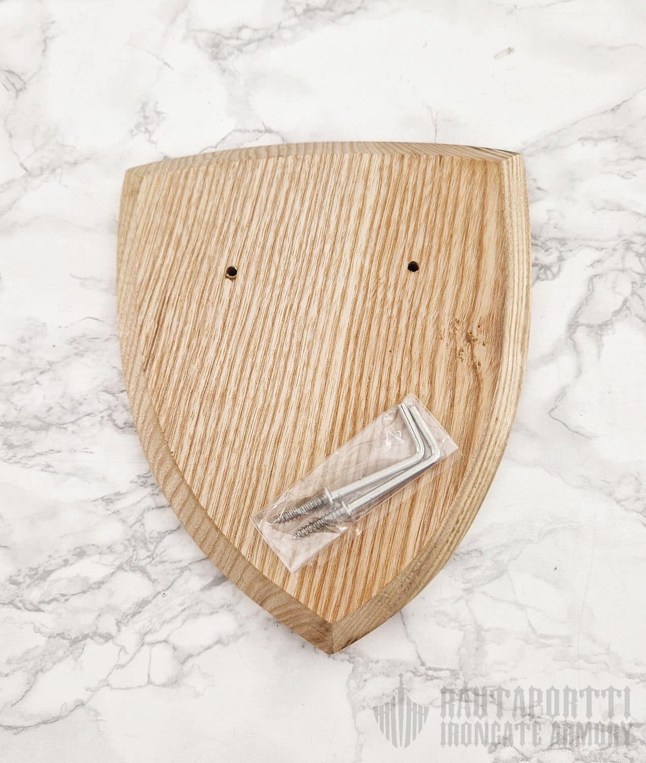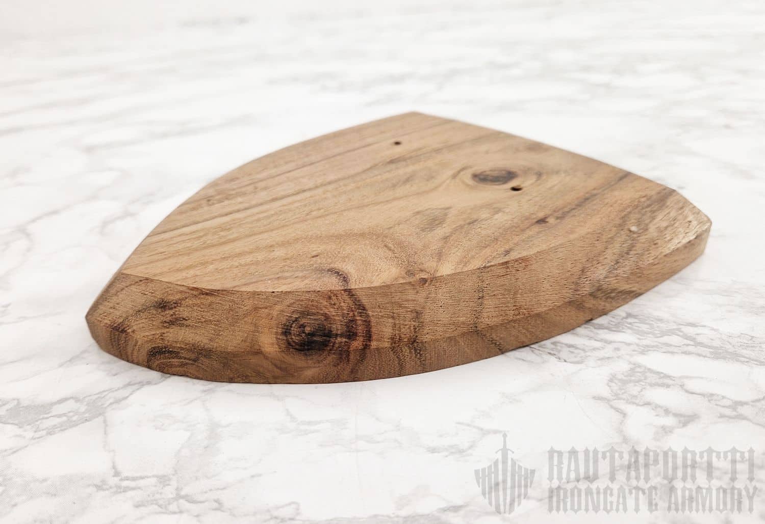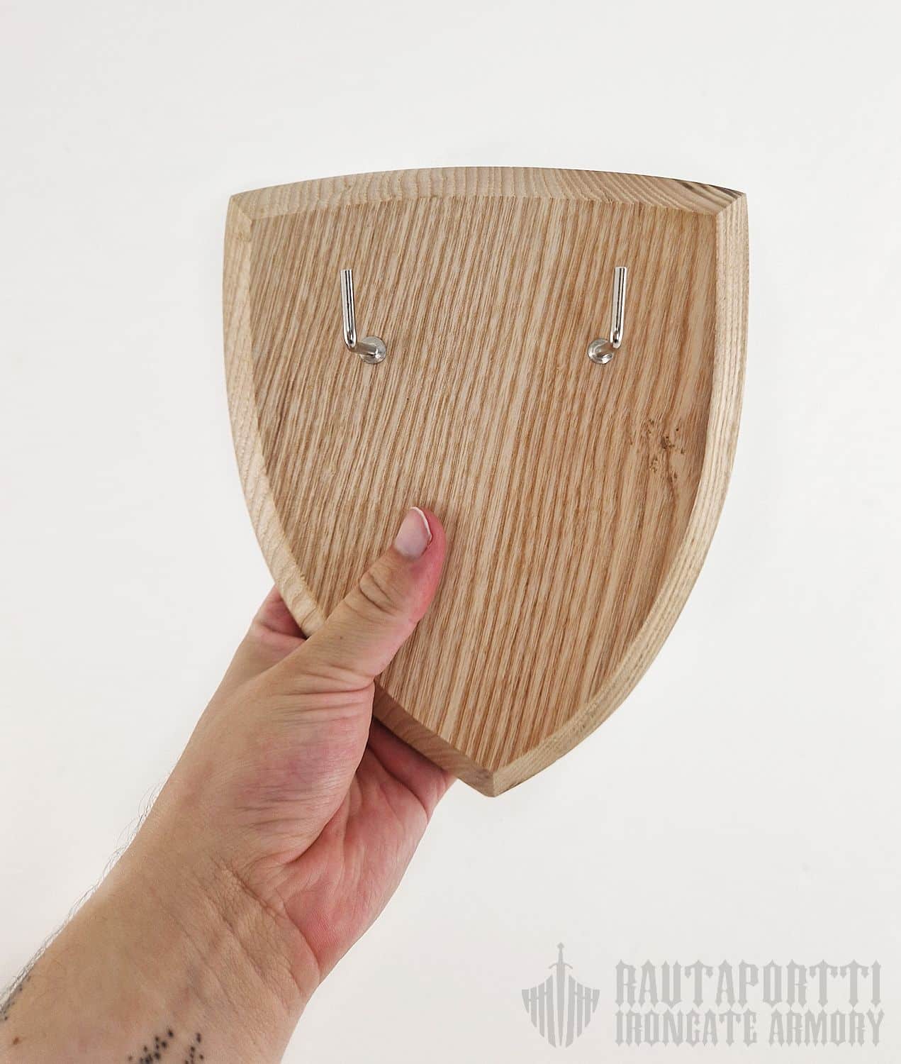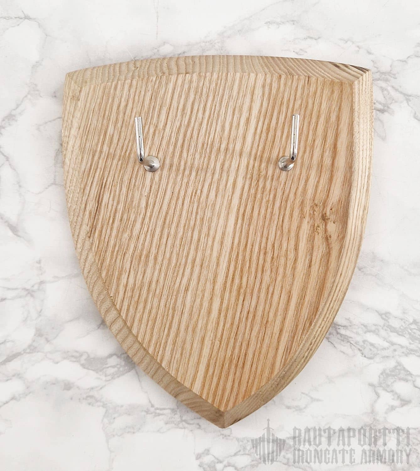 Nyt saat ripustettua koko kokoelmasi esille! Tähän seinätelineeseen istuu suurin osan markkinoilla olevista eurooppalaisista miekoista ja tikareista. Takana olevan vahvistetun reiän ansiosta telineen saa helposti ripustettua seinälle yhdellä ruuvilla tai naulalla. Seinäteline on klassisen keskiaikaisen kilven mallinen, ja sitä on saatavilla sekä akaasiasta että vaahterasta valmistettuna. Akaasia on puutyyppinä tummemman sävyinen, kun taas vaahtera on vaaleampi.