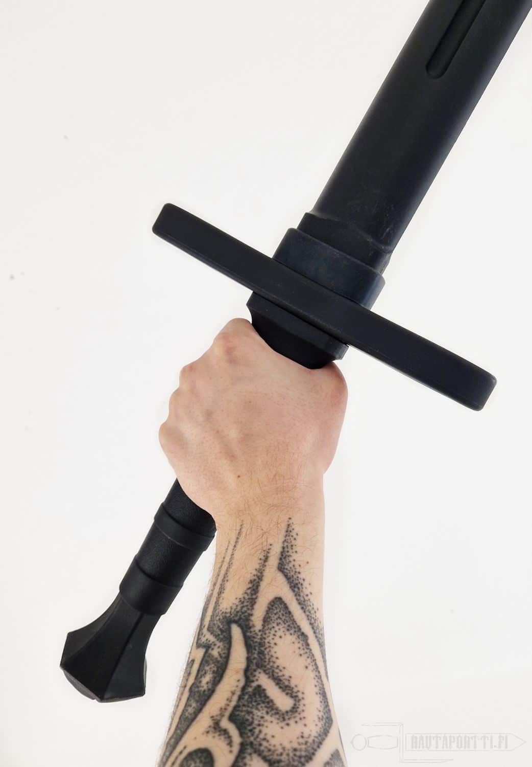 Tämä puolentoista käden miekka on suunniteltu näyttämään niin realistiselta kuin mahdollista, jotta sitä voi käyttää tehokkaasti niin yksinään kuin tikarinkin kanssa, harjoittelussa kuin esityksissäkin. Synteettinen ase käy kaikkeen missä tarvitset mahdollisimman realistisen aseen, mutta et oikean aseen mukanaan tuomaa välitöntä ja vakavaa vaaraa. Aseen kahva on kuvioitu pitävän otteen varmistamiseksi. Tämä synteettinen harjoitusase on edullinen, toiminnallinen ja hyvin kestävä.