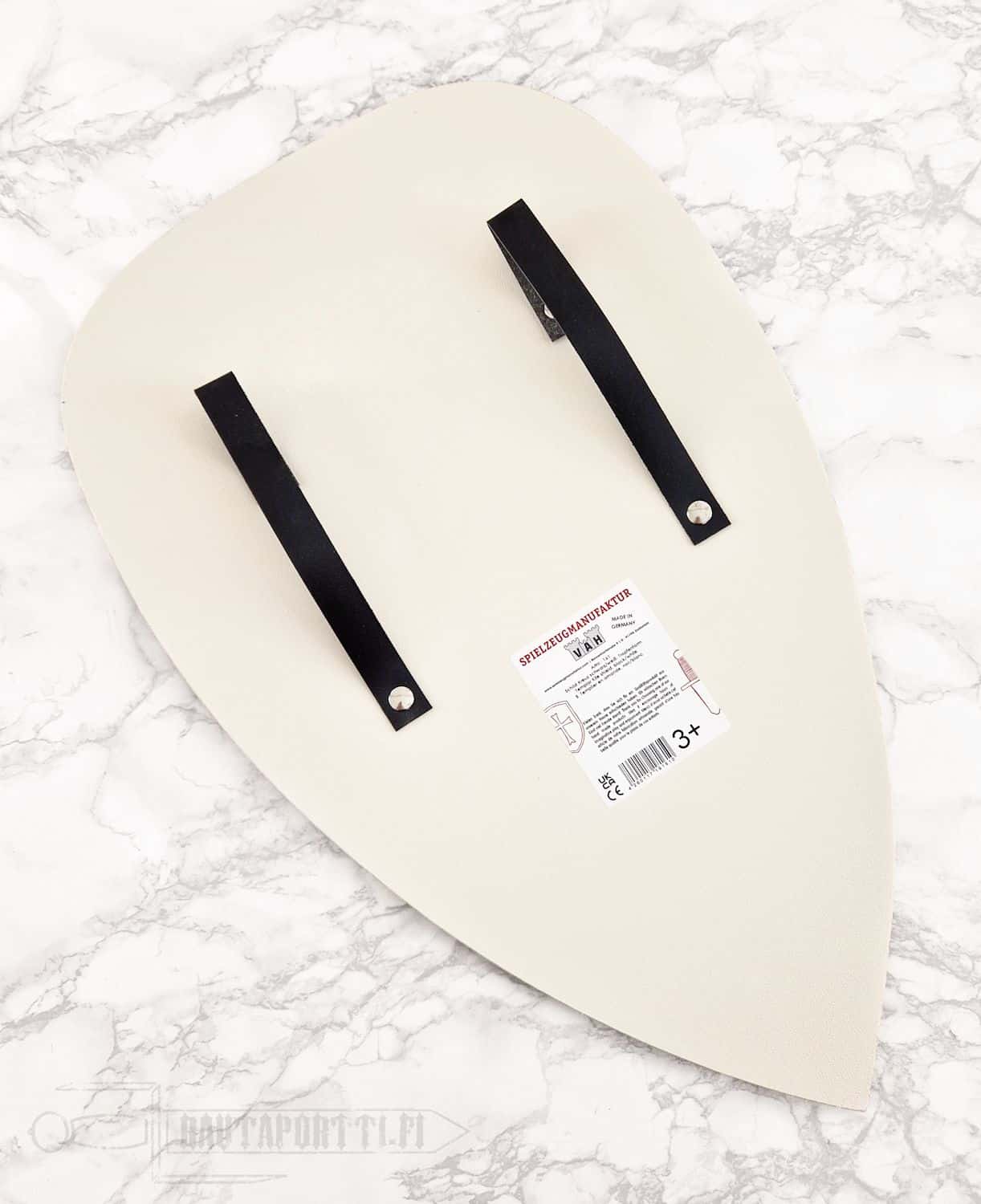 - Kilven takana on kaksi remmiä kilven oikeaoppista kantamista ja käyttöä varten