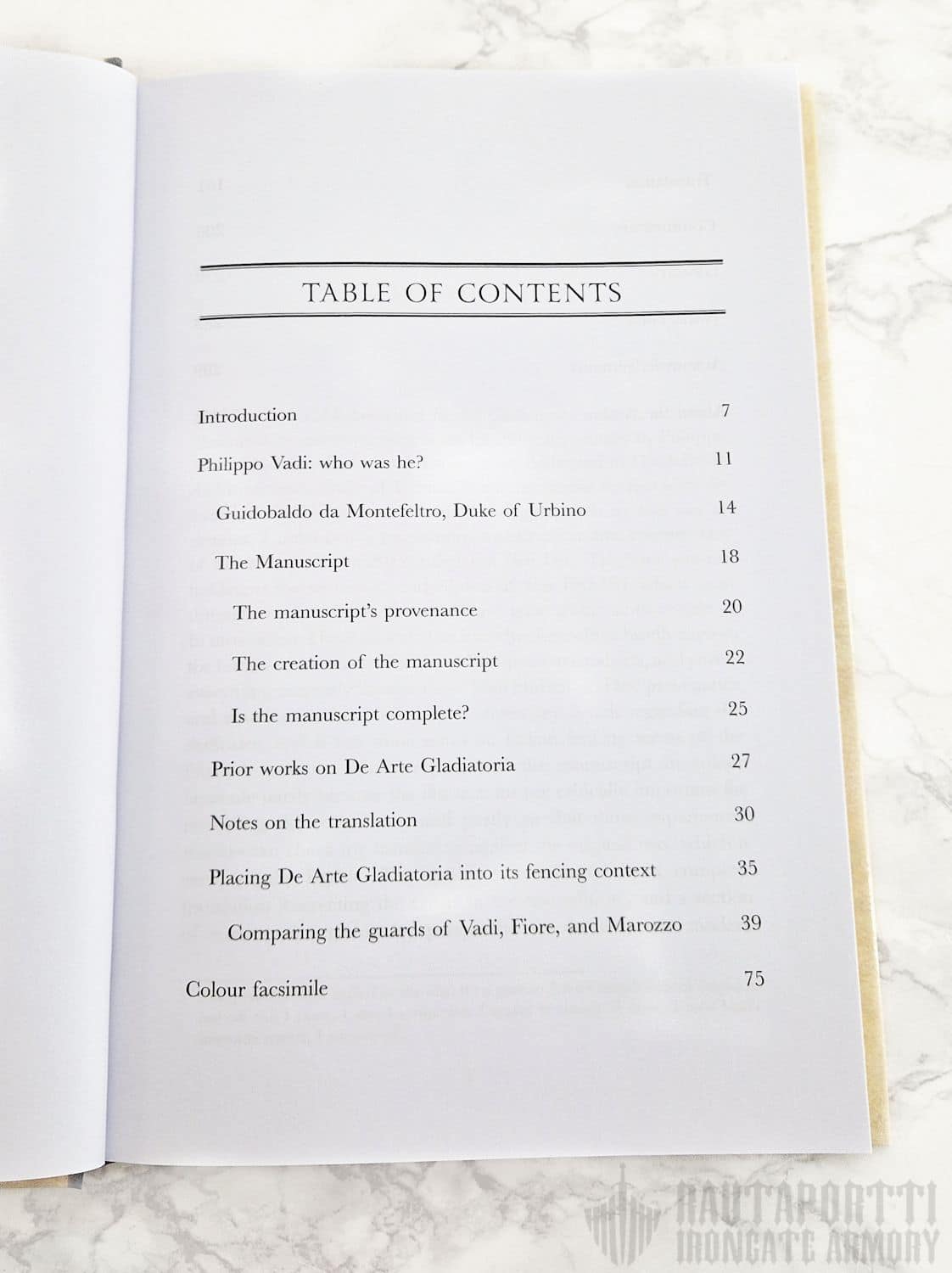 Philippo Vadin miekkailukäsikirjoitus De Arte Gladiatoria Dimicandi, miekkailun taide, kirjoitettiin 1400-luvun lopulla Urbinon herttualle Guido Montefeltrolle, kuuluisalle kondottieerille. Teos kattaat teoriat miekkailusta ja harjoittelusta, ja lopussa on kuvitettuja taistelutekniikoita. Kuvitetuissa taistelutekniikoissa näytetään miten miekkaillaan haarniskassa tai ilman haarniskaa ja opetetaan tekniikoita varsiaseiden, keihäiden ja tikarien käyttöön ja myös miten niitä vastaan puolustaudutaan. Kirjassa käydään läpi koko ritarillinen jalkaisin tapahtuva taistelutekniikoiden kirjo. HUOMAA: tämä kirja sisältää kokoväri jäljennöspainoksen Philippo Vadin De Arte Gladiatoria Dimicandista.