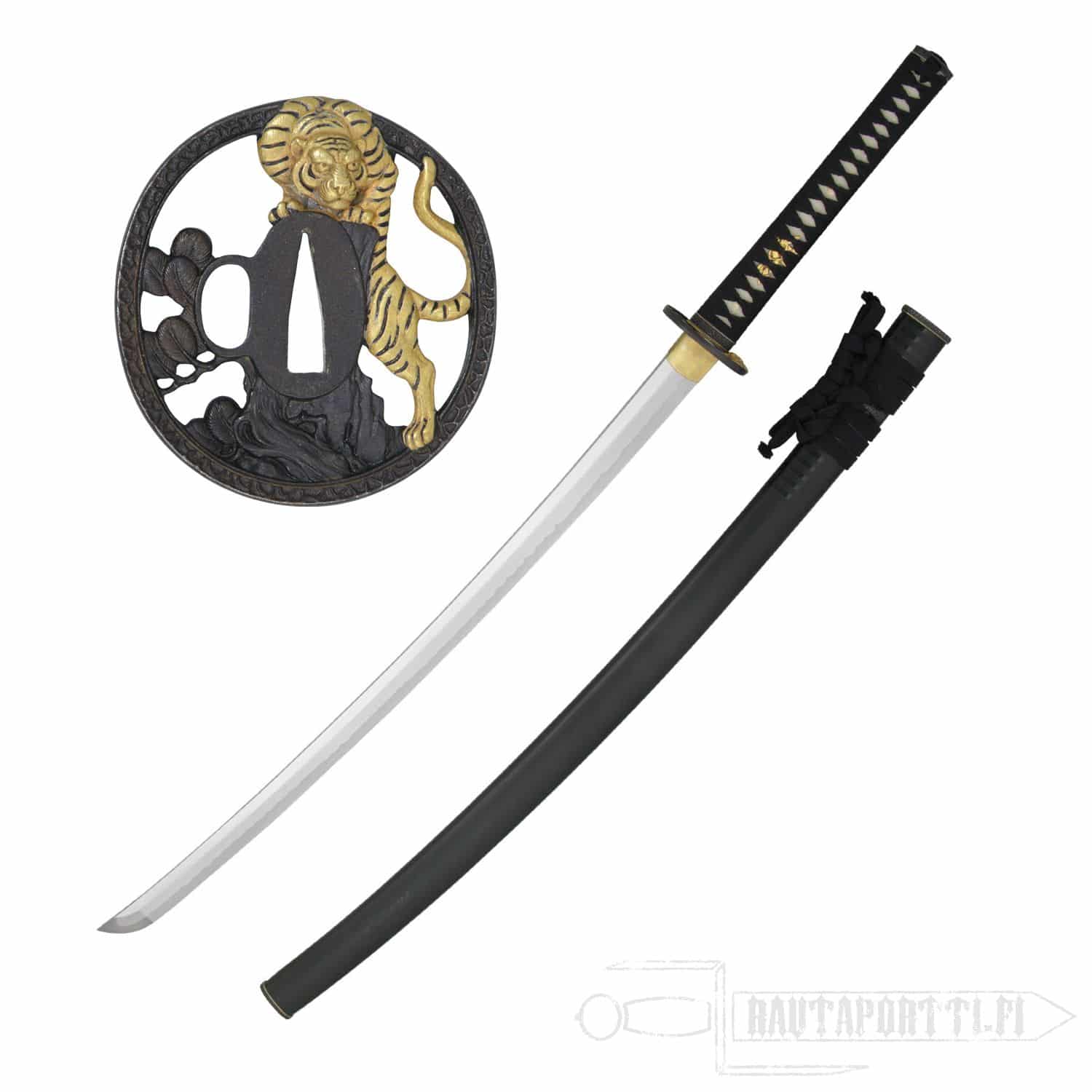 Tiger Elite Katanassa on käytetty ensiluokkaisia heloja ja sovitteita. Teräksinen Tsuba on miekan nimen mukaisesti koristeltu tiikeri-teemaisesti. Koshirae ovat mustattua pronssia jonka yksityiskohdat on kullattu. Korkealaatuinen Tsuka-ito on ensiluokkaista japanilaista puuvillaa ja se on kääritty aidon mustan Samen (rauskunnahan) ympäri. Erittäin tyylipuhdas ja kaunis ase.