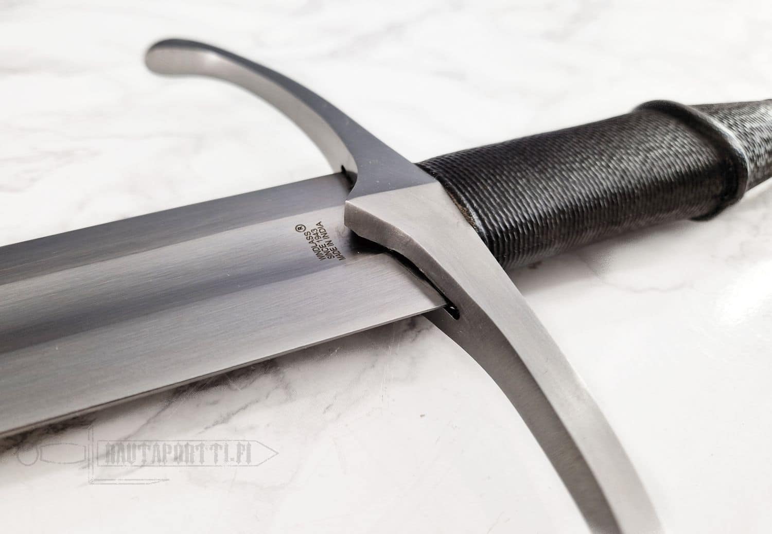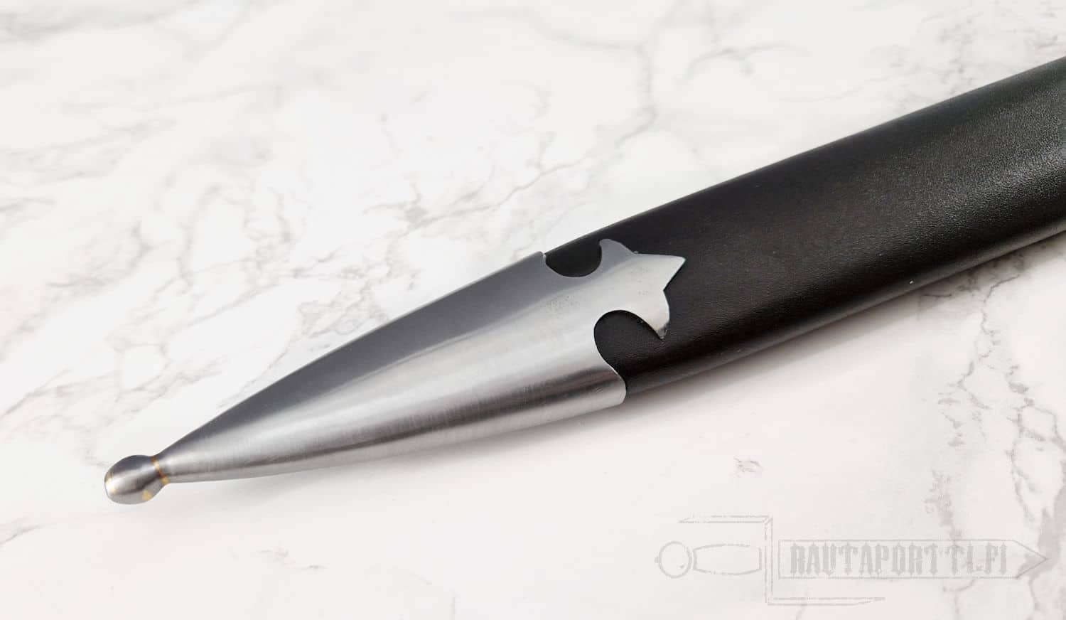 Kahvassa on nahkapäällinen joka on juovitettu käyttäen historiallisesti aitoja menetelmiä. Kahvan päälle kiinnitetyn kostean nahan ympäri sidotaan hyvin tiukkaan ohutta nyöriä. Kun kahvain on kuivunut, nyöri poistetaan, mikä jättää nahan viehättävän kuviolliseksi, antaen samalla kahvaimelle otetta ja pitoa parantavaa tekstuuria.