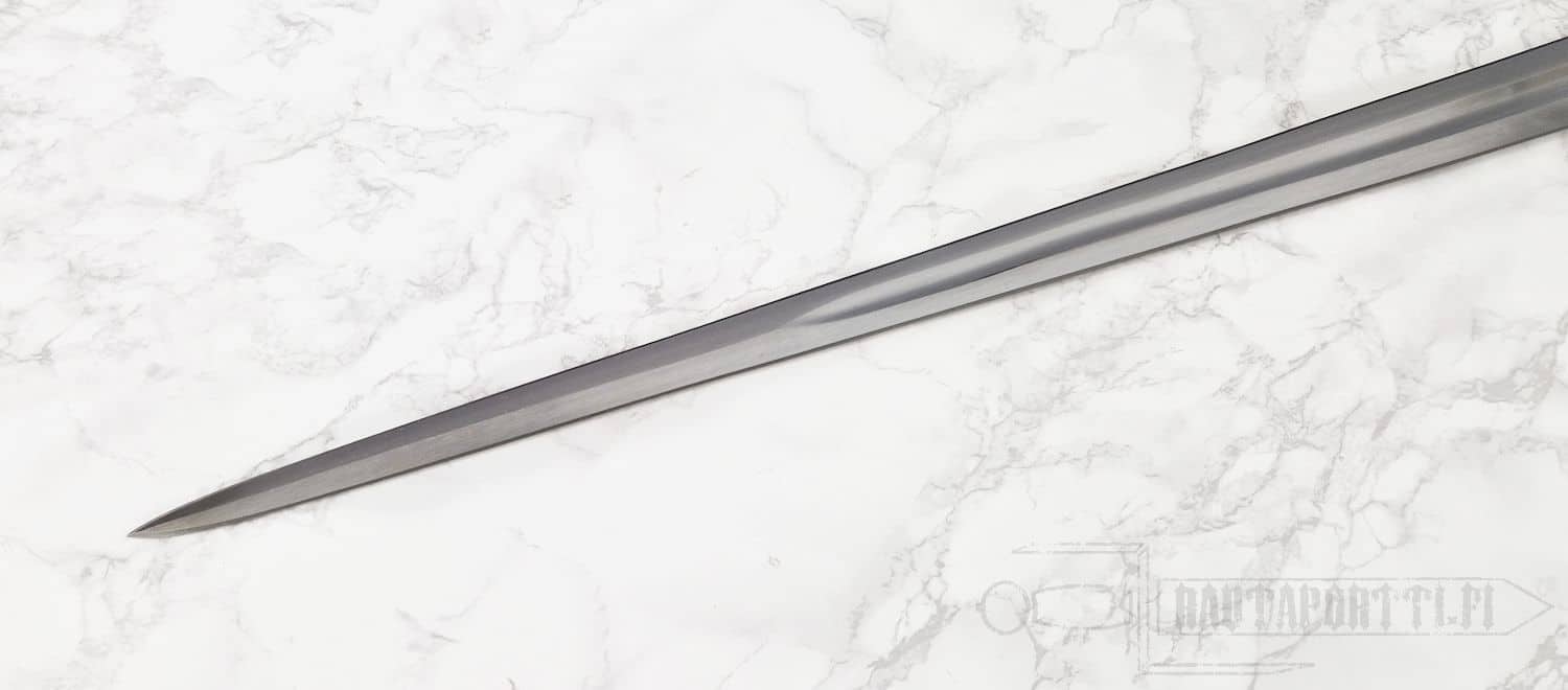 Olemme nimenneet tämän nopean ja kevyen miekan Towtonin valtaisan taistelun muistoksi. Miekassa on erinomainen kärki pistämiseen ja lähes koko terän pituinen veriura keventää miekkaa mahdollistaen salamannopeat viillot. Jalkaisin sitä voitiin käyttää kahdella kädellä, ja keveytensä ja hyvän tasapainotuksen ansiosta myös ratsastaja sai ulottuvuutta yhden käden hyökkäyksiinsä. Aikansa kevyesti haarniskoitua jalkaväkeä vastaan tämä miekka oli loistava.
