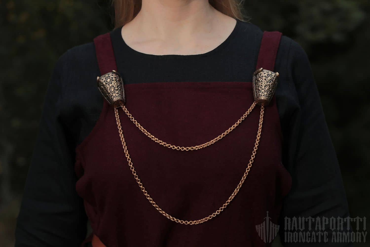 - Halutessasi voit lisätä olkahihnojen päihin koristeelliset soljet, jotka olivat yleisiä viikinkiaikana