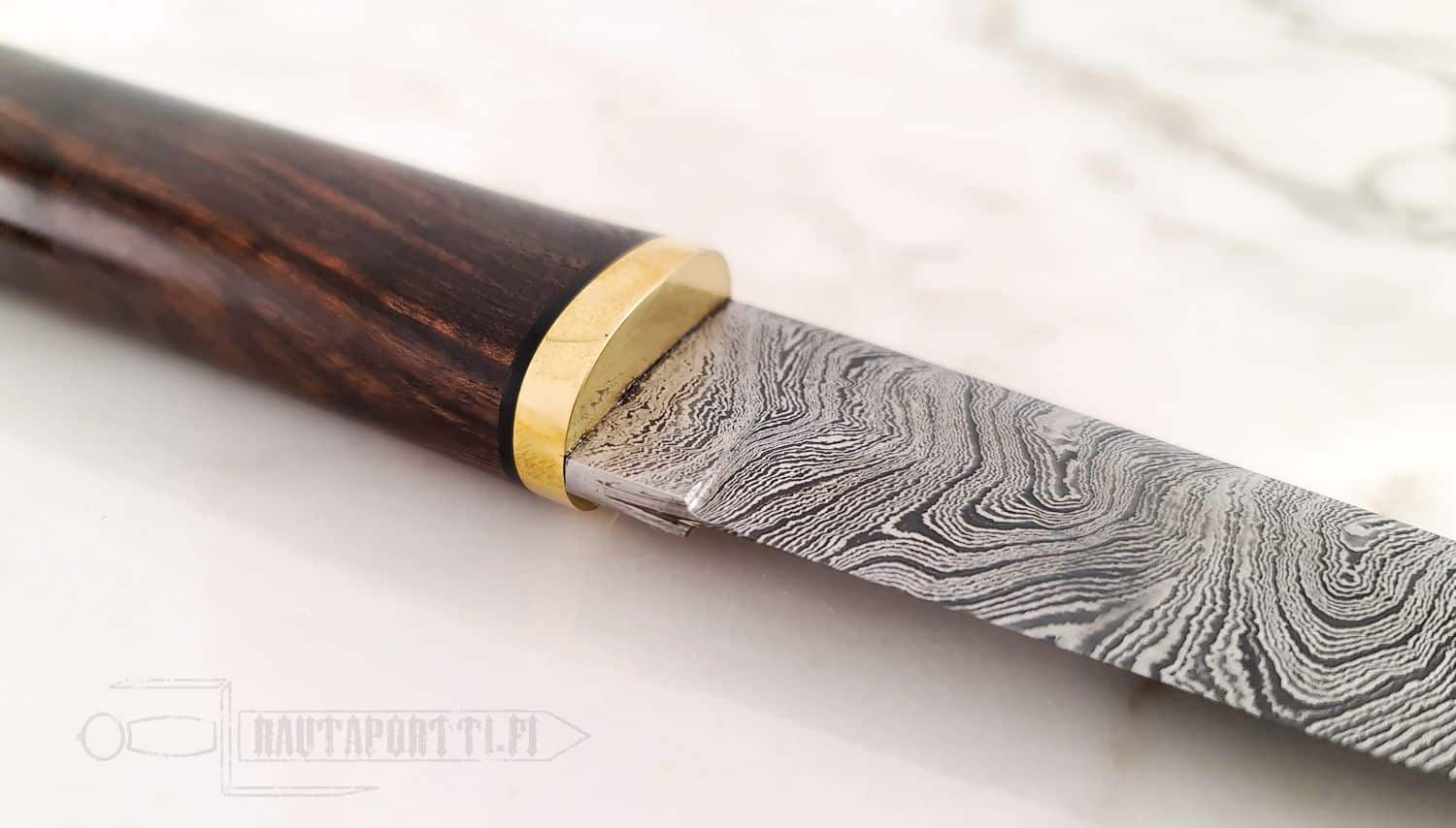 - Terän materiaali: Kierretty damascus kuvioteräs