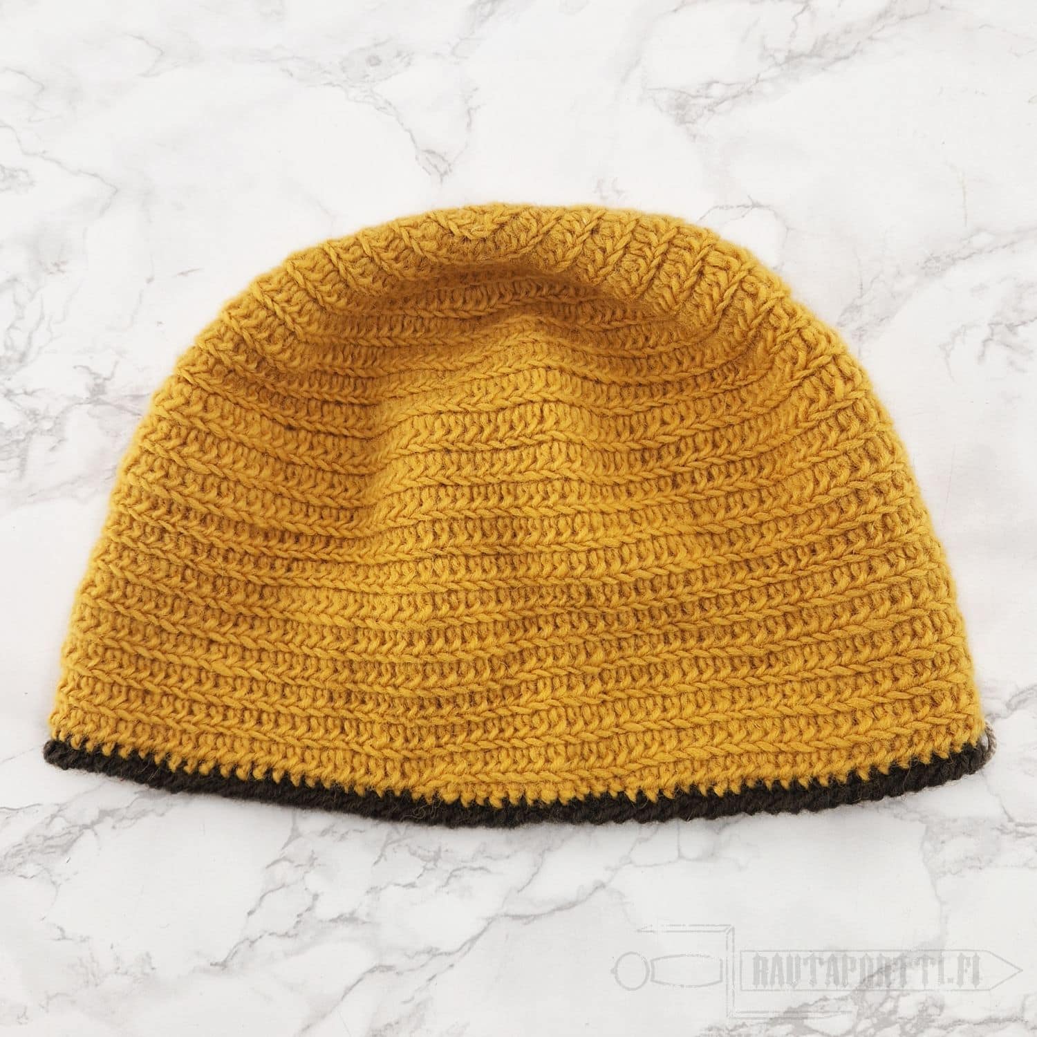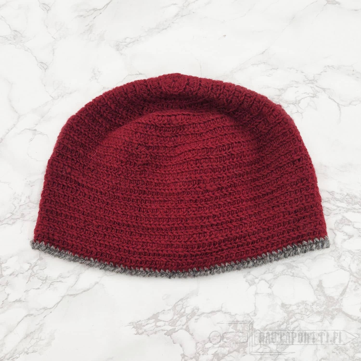 Vähän karhea pipo, mutta pehmenee varmaan käytön myötä. Juuri ja juuri riittävä koko (pääni ympärysmitta on 62 cm, ja korkeuttakin löytyy). Malli on mukavan viikinkimäinen, sopii silti hyvin nykypäiväänkin.