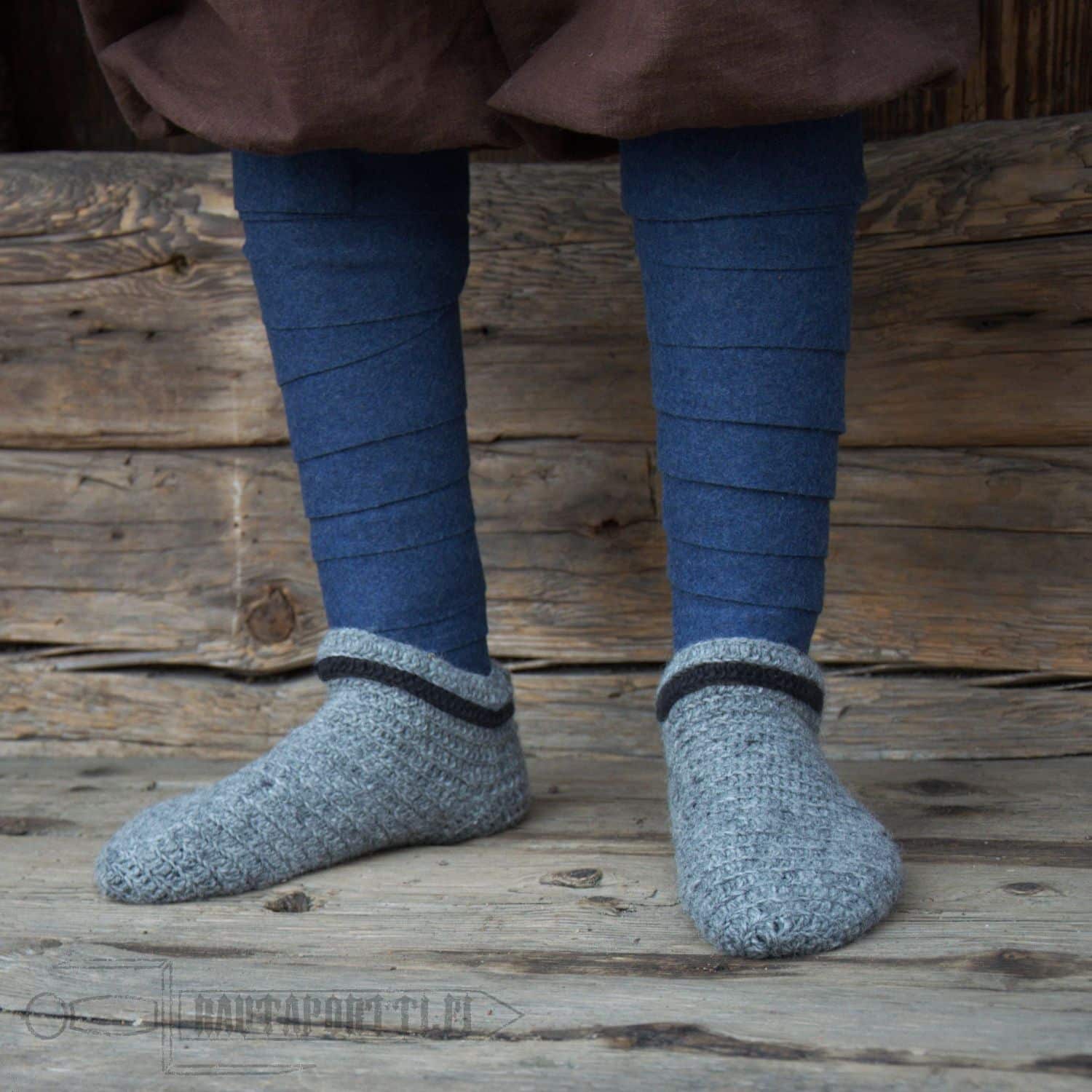 Nämä viikinkisukat ovat suunniteltu näyttämään 100% aidolta neulakinnastyöltä, mutta ovat todellisuudessa taitavasti virkattu. Tekniikan ero on niin hienovarainen, että vain asiantuntija erottaa lopputulokset läheltä tarkasteltuna. Jokainen sukka on 100 % käsintehty aidosta lampaanvillasta, mikä antaa sille perinteisen ulkonäön ja erinomaiset lämmöneristysominaisuudet. Koska kyseessä on käsityötuote, eikä tehdaslinjastolta tullut massatuote, kappaleiden välillä on pientä muoto- ja kokovaihtelua.