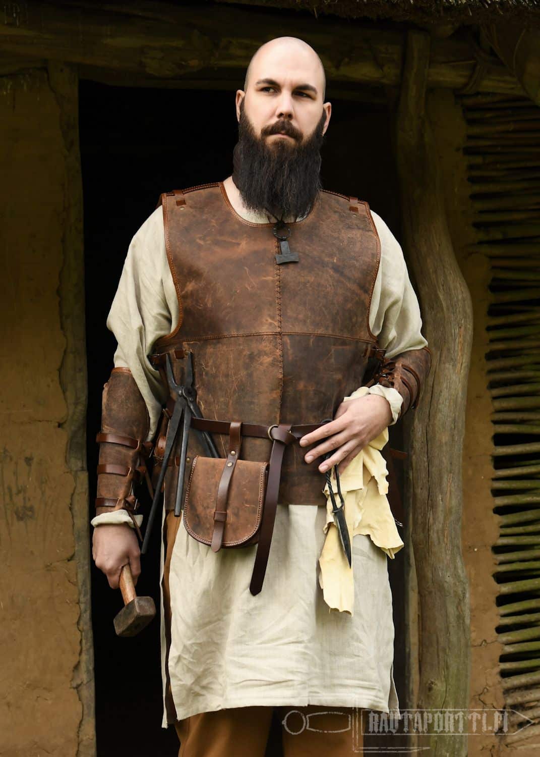 Tämä vyölaukku yhdistää toiminnallisuuden ja esteettisen muotoilun, joten se ei ole vain näppäräkäyttöinen, vaan myös tyylikäs lisä moneen erityyppiseen asuun. Onpa hahmosi sitten taitava seppä tai rohkea viikinki, laukku antaa viimeisen silauksen asuun kuin asuun. Tämä korkealaatuinen laukku on täydellinen valinta, on käyttötarkoitus sitten LARP, cosplay, historianelävöittäminen tai tyylikäs lisä historialliseen asuun.
